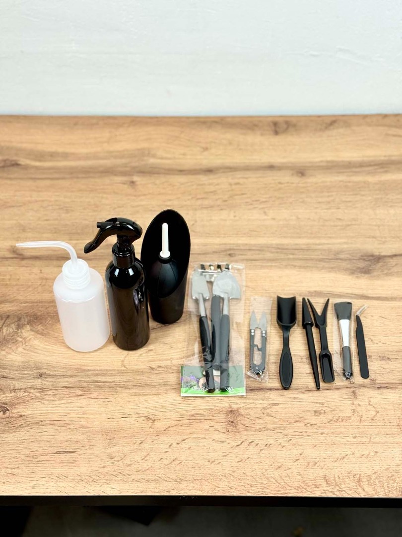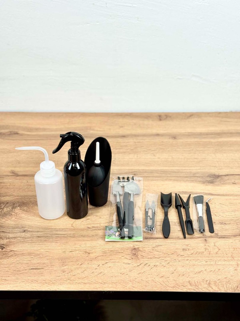 Всё в одном месте: Это продуманный комплект, в котором есть абсолютно все для базового ухода, пересадки и поддержания красоты ваших мини-растений. Вам не придется искать и покупать инструменты по отдельности.