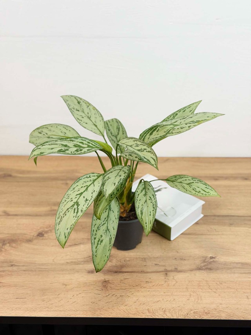 Аглаонема Мария Кристина D:14см H:40см — это вечнозелёное многолетнее растение с крупными серебристо-серыми листьями, практически полностью скрывающими стебель. Тёмно-зелёные края листовых пластинок выгибаются наружу, в такой же цвет окрашена поверхность прожилок. В длину листья растения достигают порядка 20 см, в ширину — около 10 см. Сама аглаонема Мария Кристина способна вырастать до 70 см. При правильном уходе аглаонема Мария Кристина будет радовать вас своей красотой долгие годы.
