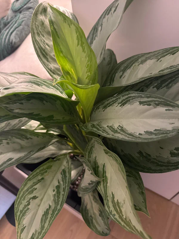 - Влажность: ценит высокую влажность, поэтому нужно регулярно опрыскивать тёплой водой. Также можно поставить горшок с аглаонемой на поддон с влажным керамзитом или галькой.