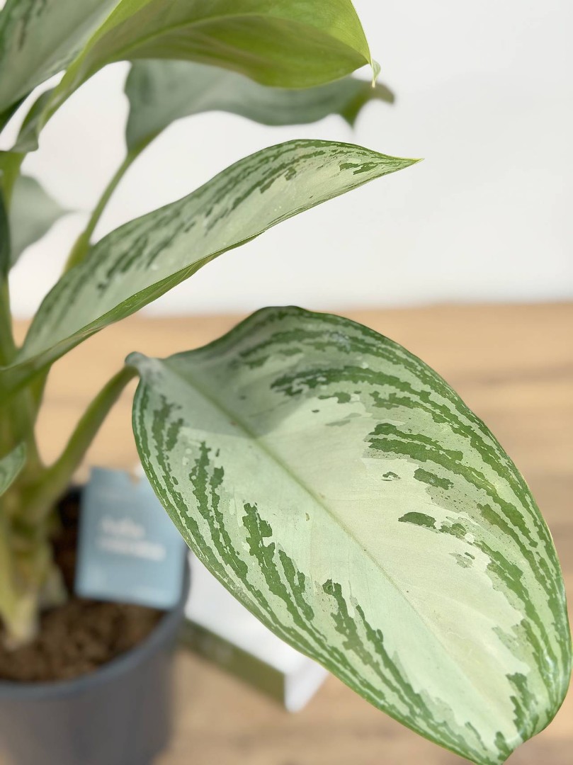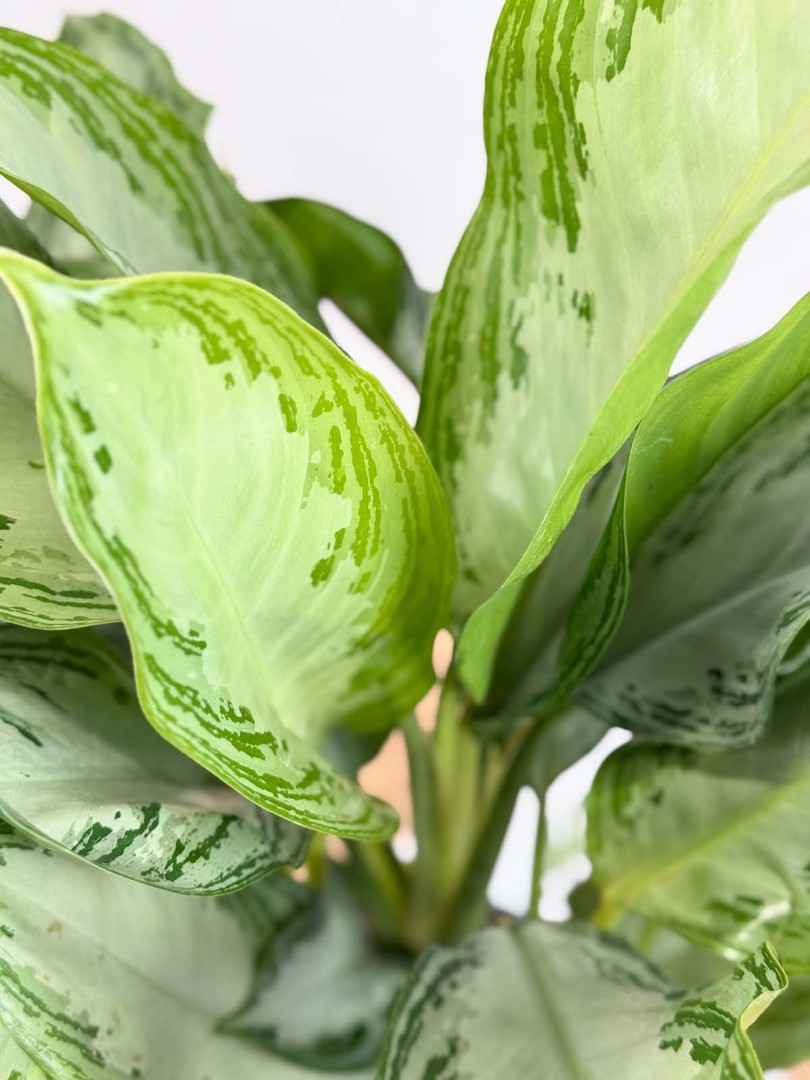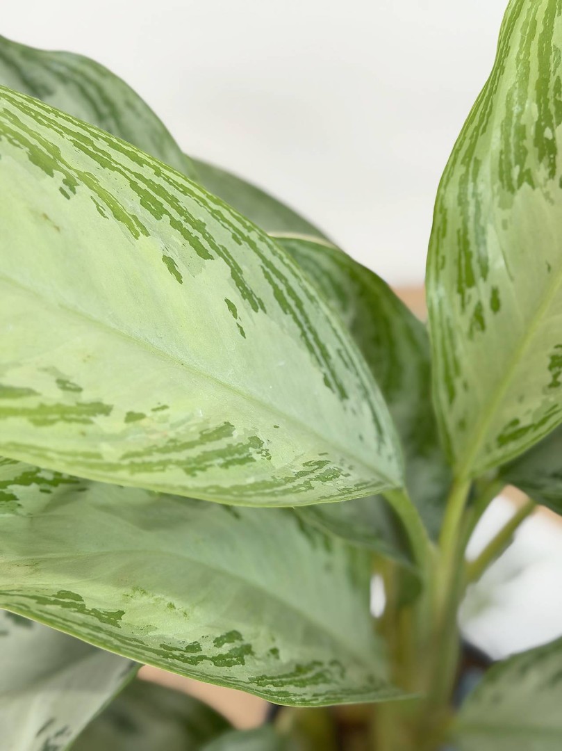 Аглаонема Сильвер Бэй D:17см H:50см — это вечнозелёное многолетнее растение с красивыми серебристыми листьями с зелёной кромкой. Листья крупные, блестящие, продолговатые, с заострёнными концами. Молодые растения имеют короткие стебли, которые становятся более заметными у взрослых экземпляров. Окраска листьев аглаонемы Сильвер Бэй уникальна: она сочетает в себе серебристый цвет с насыщенным зелёным оттенком по краям. Это делает растение очень декоративным и привлекательным.