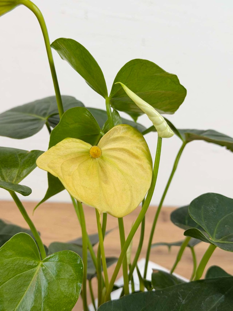 Антуриум Андрианум Ванилла — это нежное и изысканное комнатное растение, которое привлекает внимание своими крупными сердцевидными листьями и необычными соцветиями. Листья антуриума Ванилла имеют светло-зелёный цвет с глянцевой поверхностью, а соцветия представлены в виде кремовых покрывал с жёлтым початком.