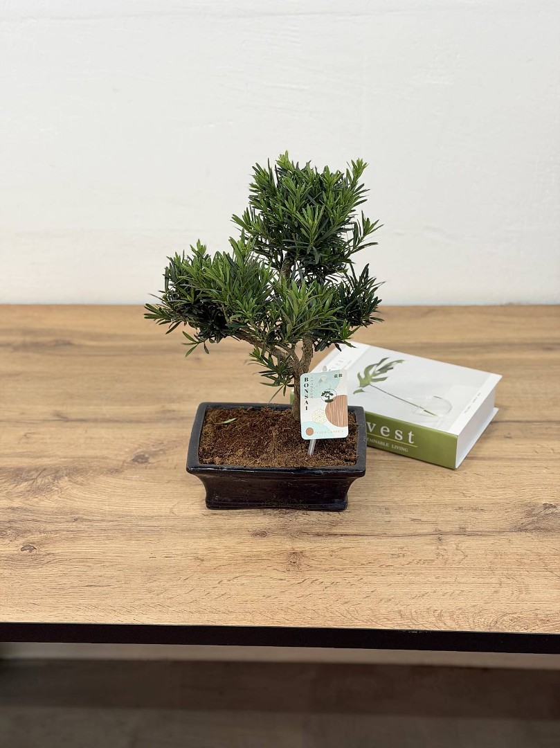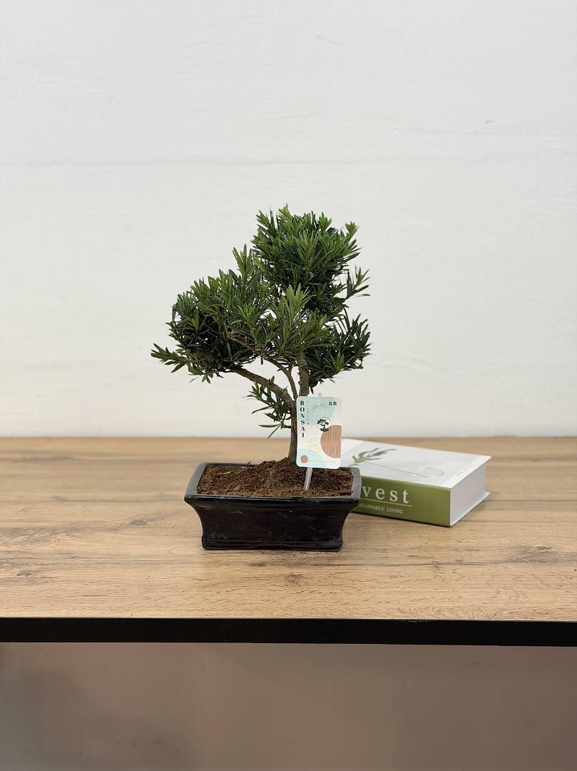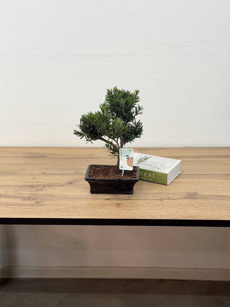 Подокарпус Бонсай D:20 см H:40 см — живое произведение искусства для вашего интерьера! Это миниатюрное хвойное деревце с густой изумрудной хвоей и изящно изогнутым стволом станет элегантным акцентом в любом пространстве. Идеально подходит для любителей бонсай, ценящих гармонию, умиротворение и природную красоту.
