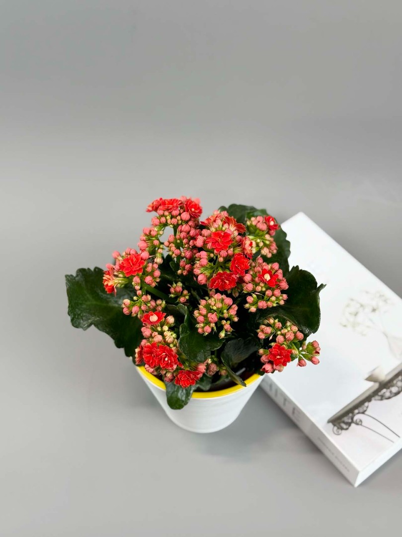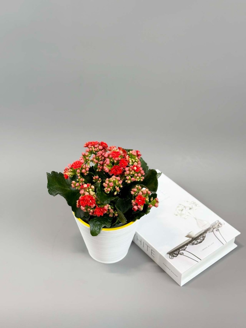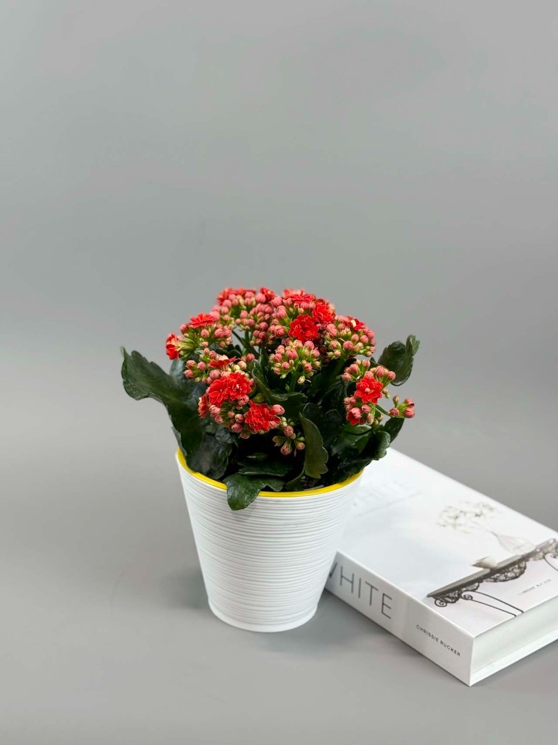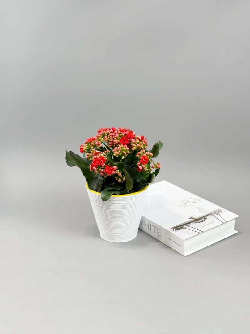 Каланхоэ Каландива в белом кашпо D:15см H:25см