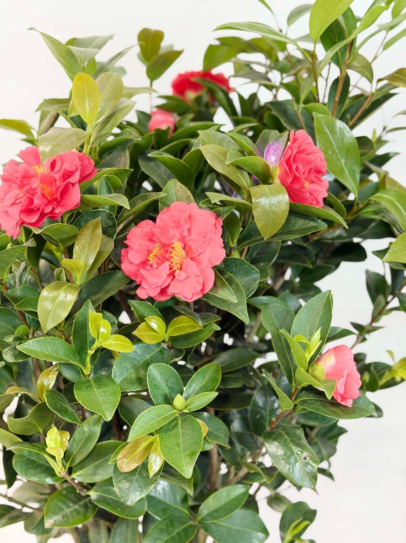 Королевское цветение: Ни одно другое комнатное растение не может похвастаться такими совершенными цветами в зимний период. Каждый цветок камелии — это произведение искусства, которым можно любоваться бесконечно.