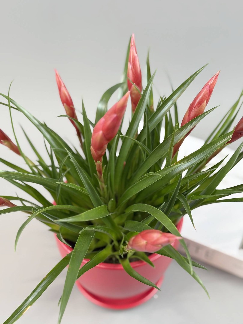 Важно знать (Жизненный цикл): Бромелиевые цветут один раз в жизни. После долгих месяцев цветения материнская розетка начнет медленно отмирать, но перед этим она обязательно даст у основания "деток" — новые побеги, которые со временем вырастут и зацветут снова!