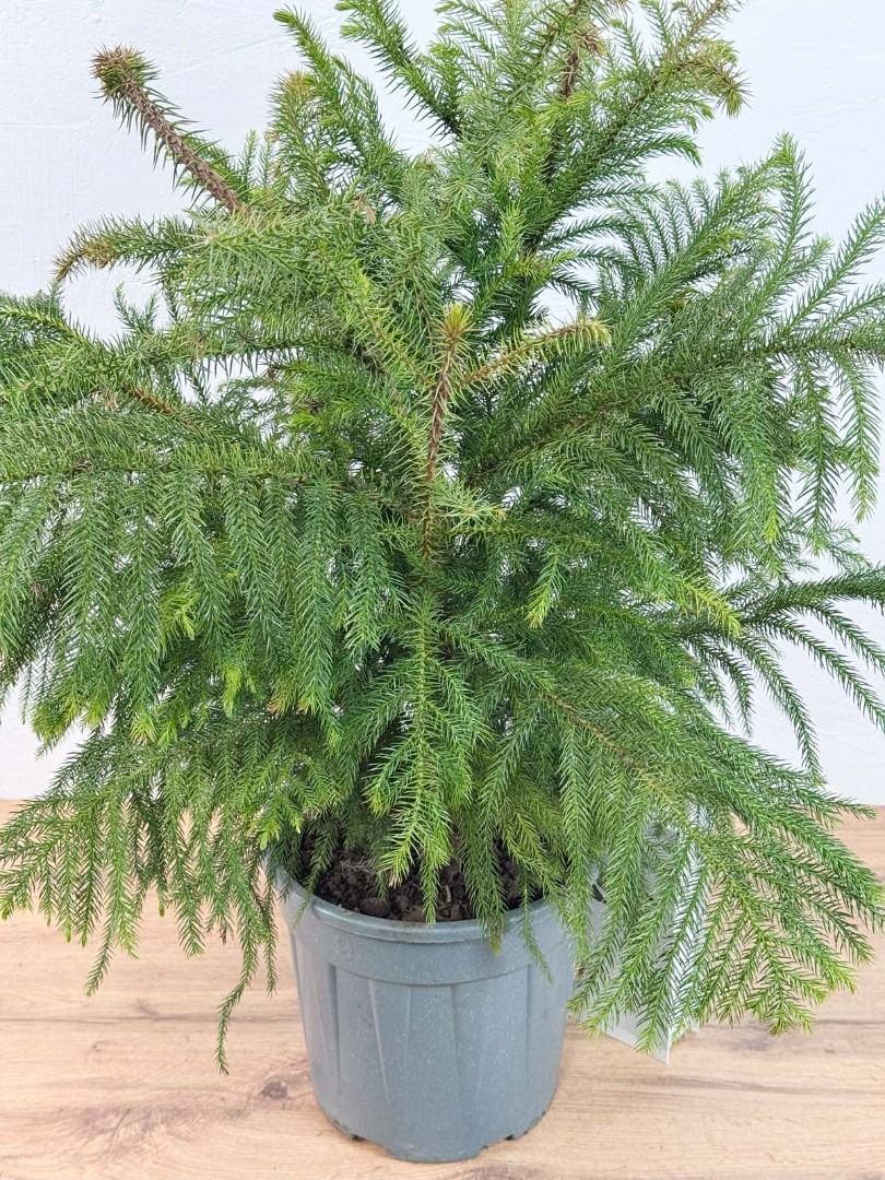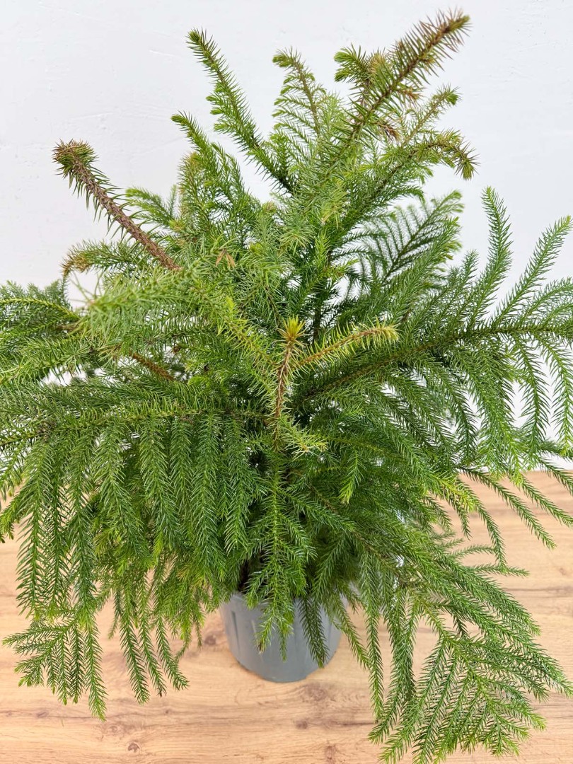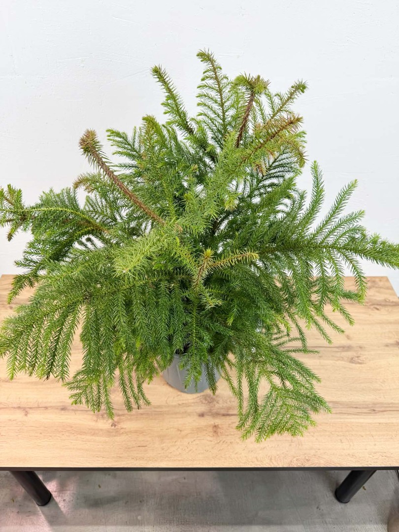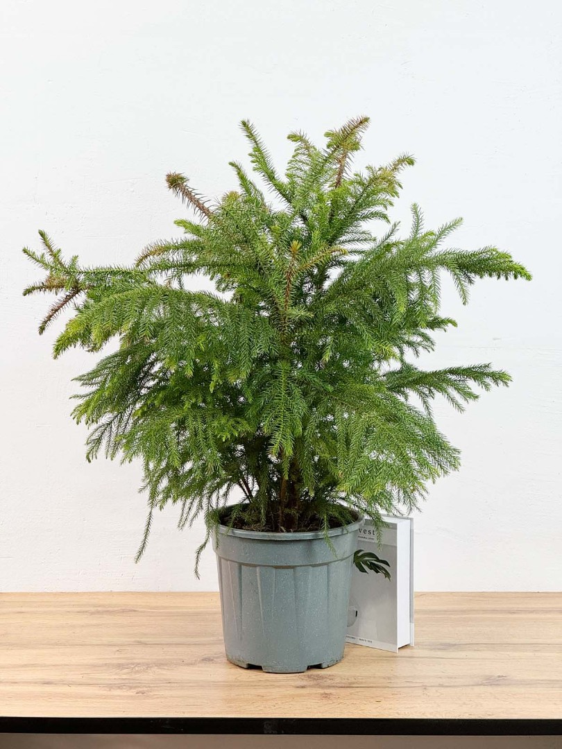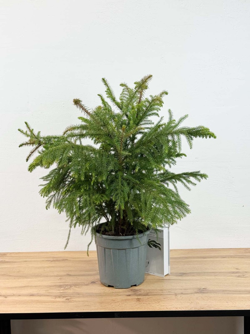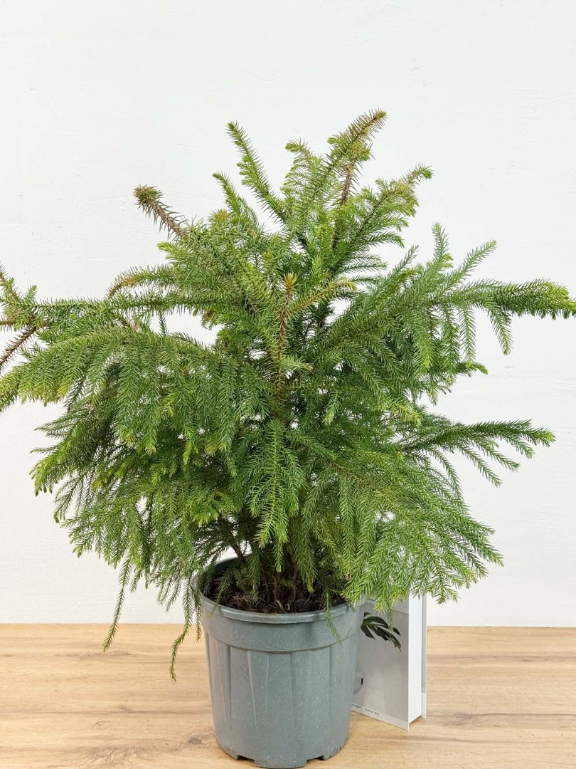 Араукария Хетерофилла D:26см H:110см – это величественное хвойное растение, которое станет настоящим украшением вашего дома или офиса. Это медленно растущая комнатная ель, вечнозеленое деревце, которое может достичь высоты до 3-х метров, с густой кроной и маленькими мягкими иголками. Иголки имеют темно-зеленую окраску и расположены на ветвях спирально, ветви расположены почти горизонтльно. Для формирования равномерной кроны растение желательно поворачивать на 90 градусов 1 раз в неделю или обеспечить яркое освещение с двух сторон
