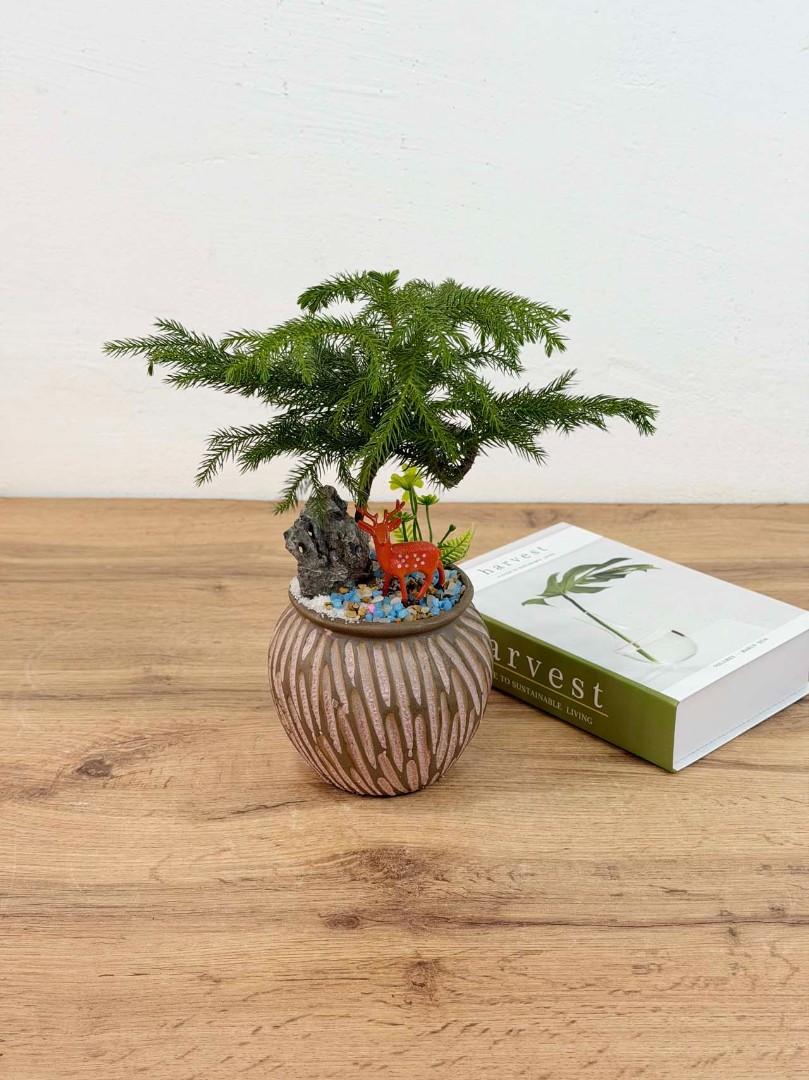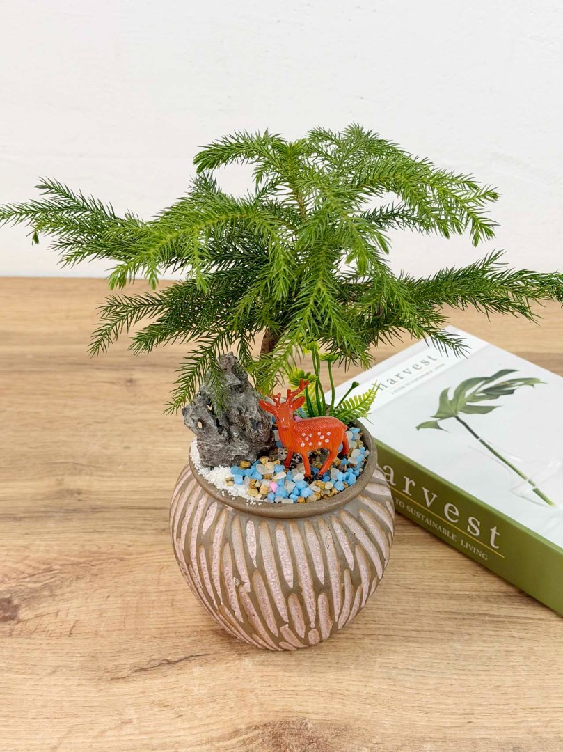 Араукария – это величественное хвойное растение, которое станет настоящим украшением вашего дома или офиса. Это медленно растущая комнатная ель, вечнозеленое деревце, которое может достичь высоты до 3-х метров, с густой кроной и маленькими мягкими иголками. Иголки имеют темно-зеленую окраску и расположены на ветвях спирально, ветви расположены почти горизонтльно. Для формирования равномерной кроны растение желательно поворачивать на 90 градусов 1 раз в неделю или обеспечить яркое освещение с двух сторон