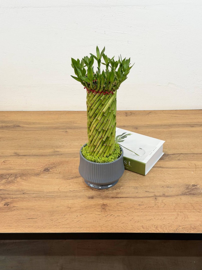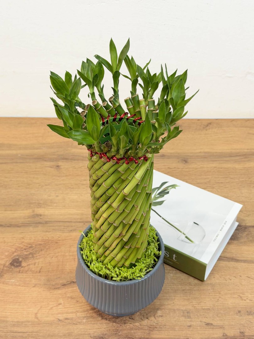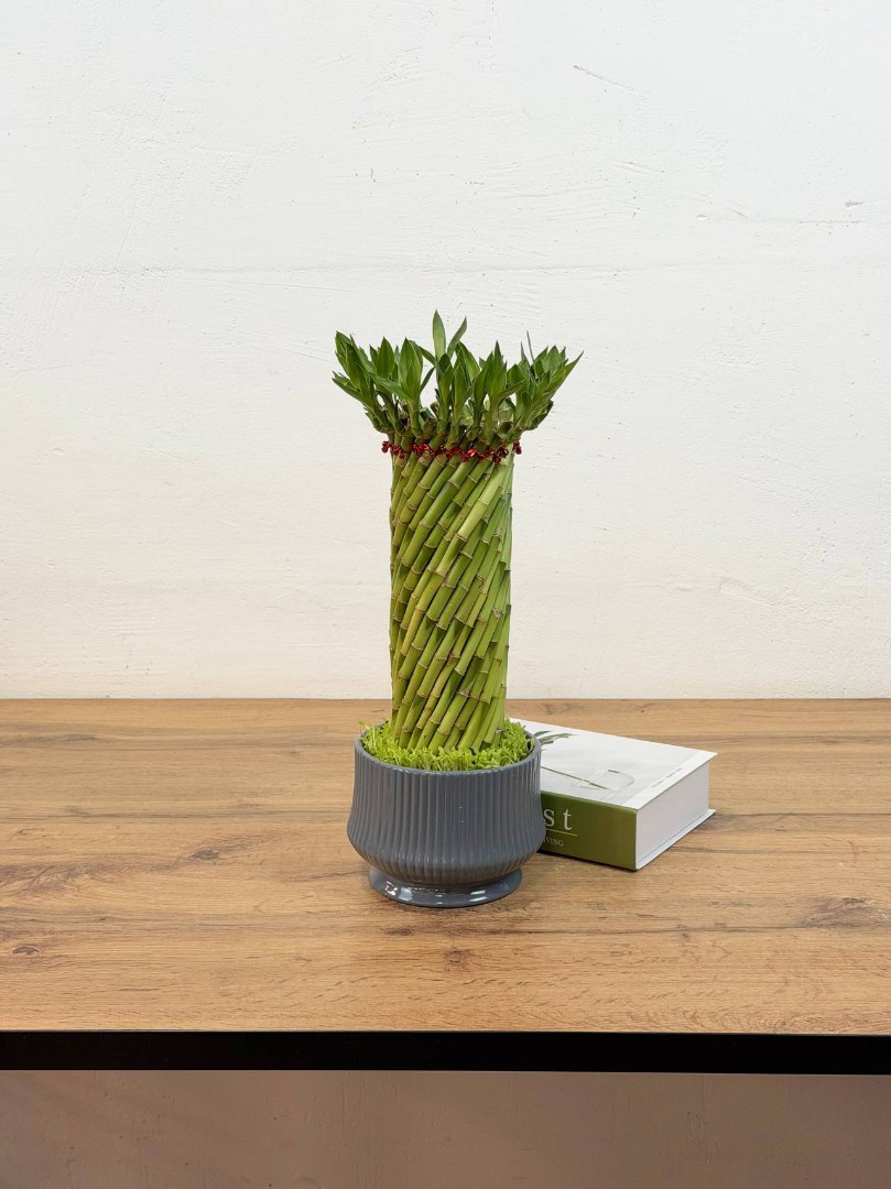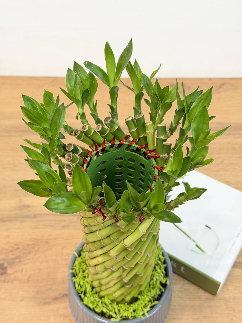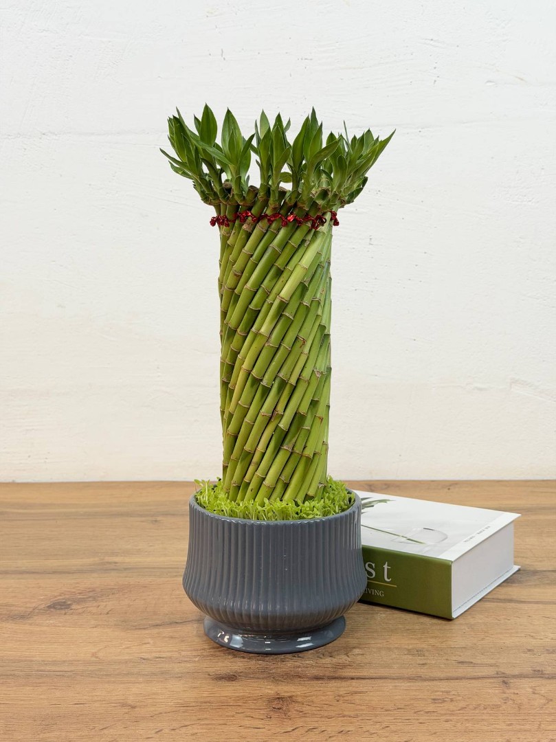 Бамбук лаки спираль в керамике представляет собой изящное и декоративное растение с характерными спиралевидными побегами. Его насыщенно-зеленые листья образуют плотную и густую крону, создавая эффектный и выразительный вид. Это растение идеально подходит для оформления интерьеров и садов, добавляя им экзотическую нотку и природную красоту.