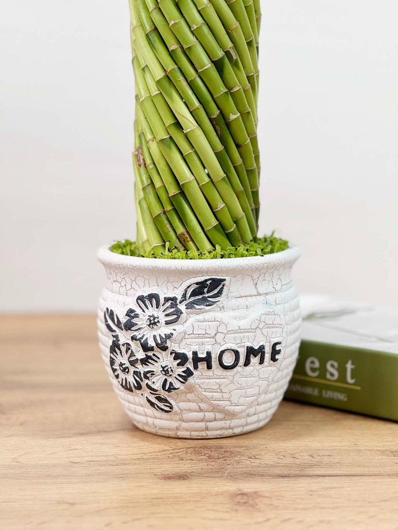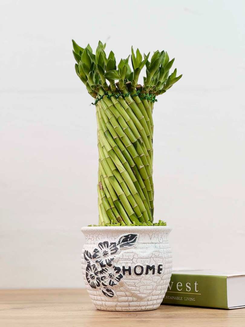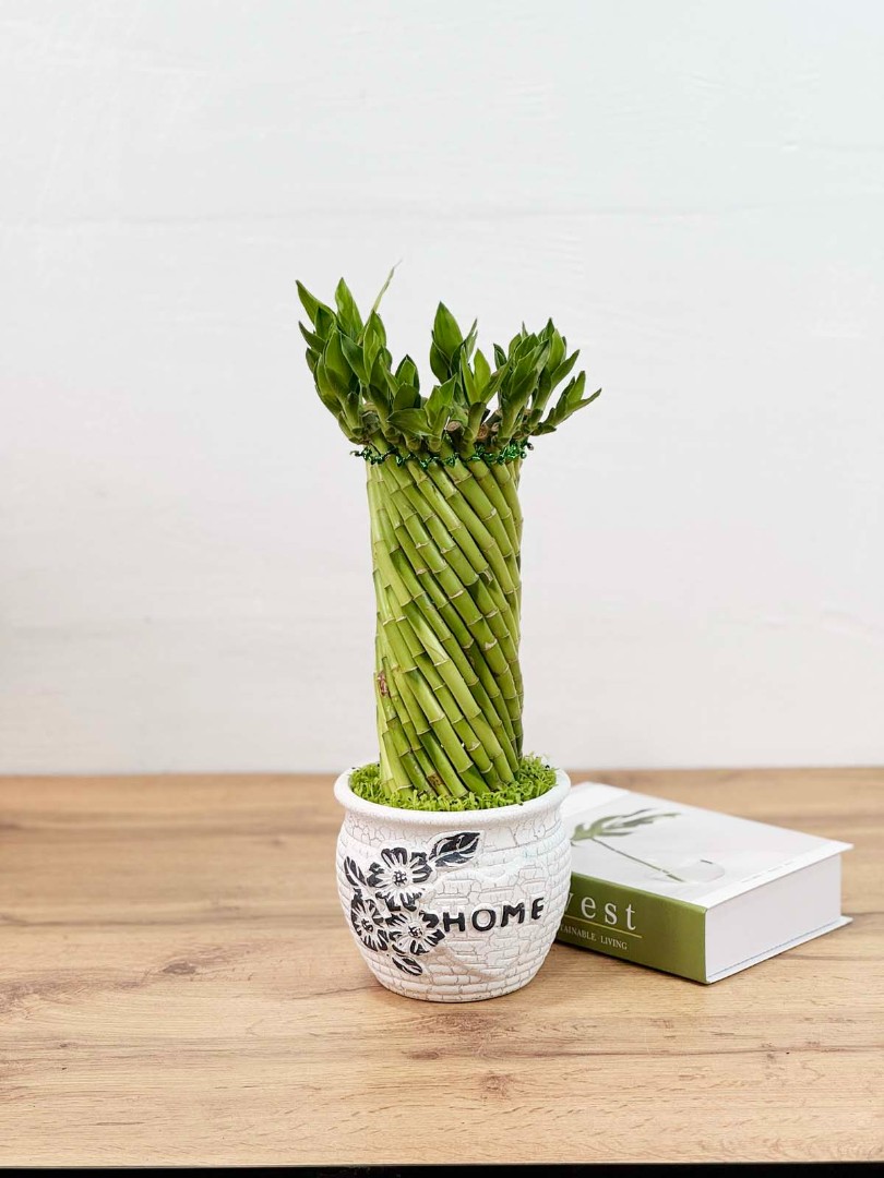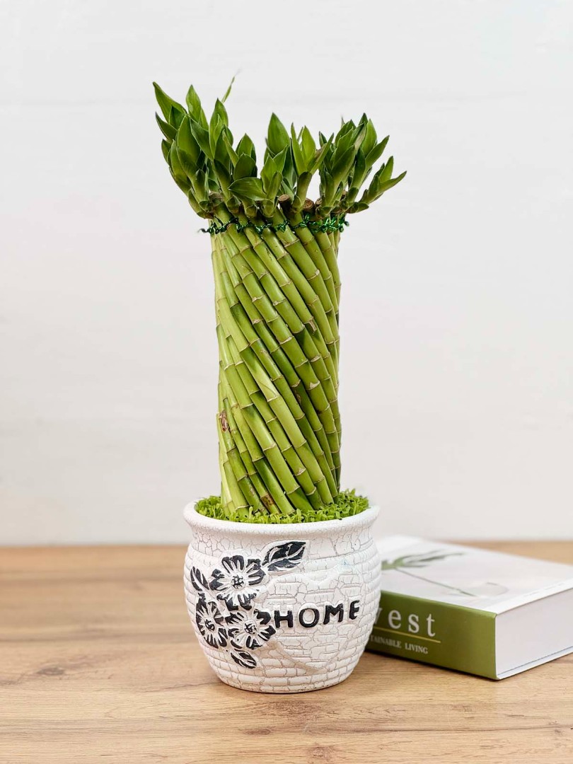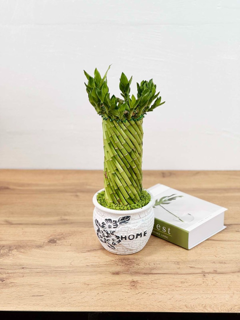Бамбук лаки спираль в керамике представляет собой изящное и декоративное растение с характерными спиралевидными побегами. Его насыщенно-зеленые листья образуют плотную и густую крону, создавая эффектный и выразительный вид. Это растение идеально подходит для оформления интерьеров и садов, добавляя им экзотическую нотку и природную красоту.