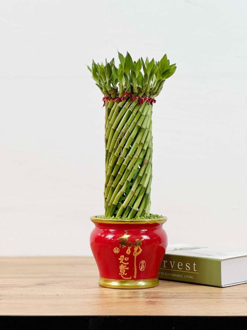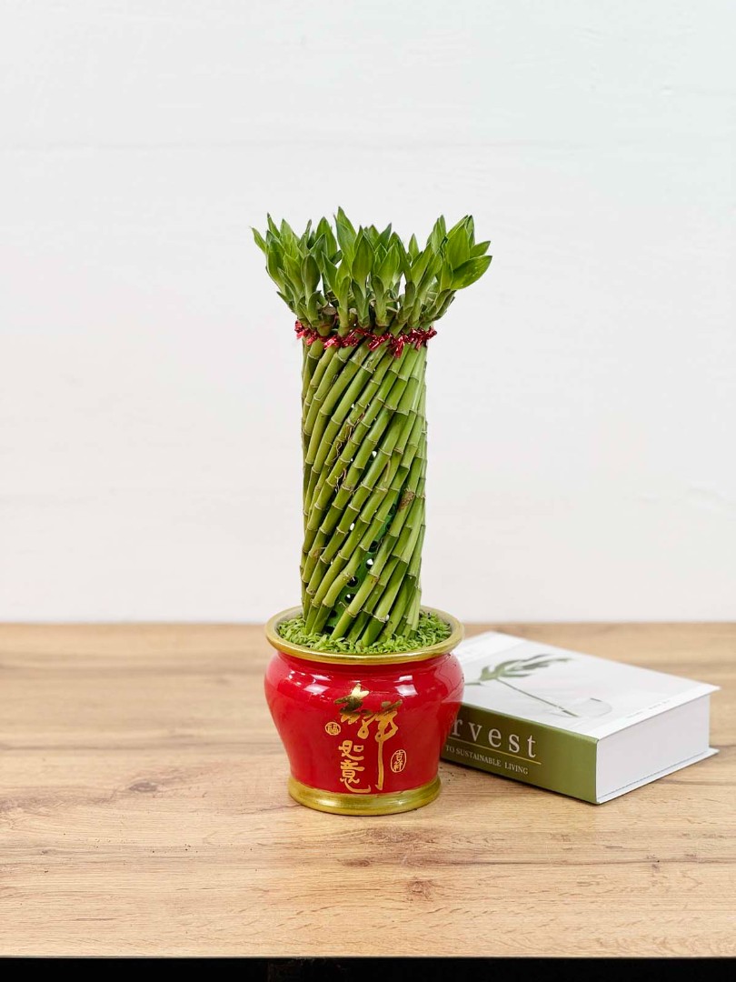 Бамбук лаки спираль в керамике представляет собой изящное и декоративное растение с характерными спиралевидными побегами. Его насыщенно-зеленые листья образуют плотную и густую крону, создавая эффектный и выразительный вид. Это растение идеально подходит для оформления интерьеров и садов, добавляя им экзотическую нотку и природную красоту.