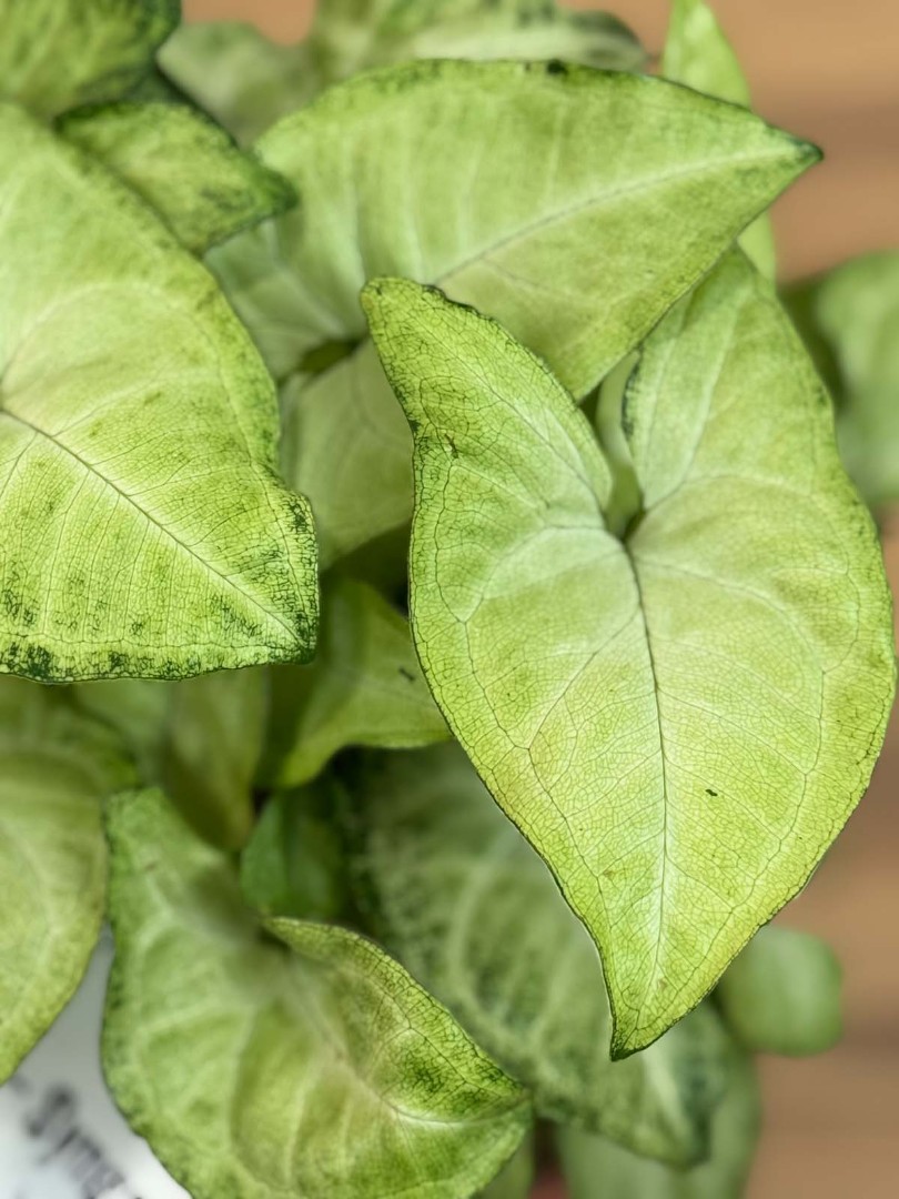 Сингониум «Вайт Батерфляй» (Белая Бабочка) получил свое название не случайно. Его многочисленные листья имеют изящную форму наконечника стрелы и светлую, почти серебристо-белую окраску с тонкой зеленой каймой. Глядя на пышный кустик, кажется, будто на него присела отдохнуть целая стая экзотических светлых бабочек.
