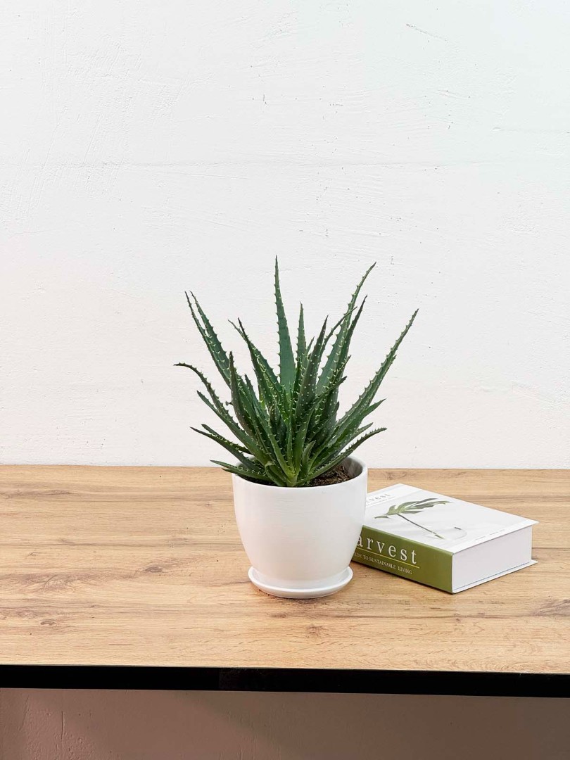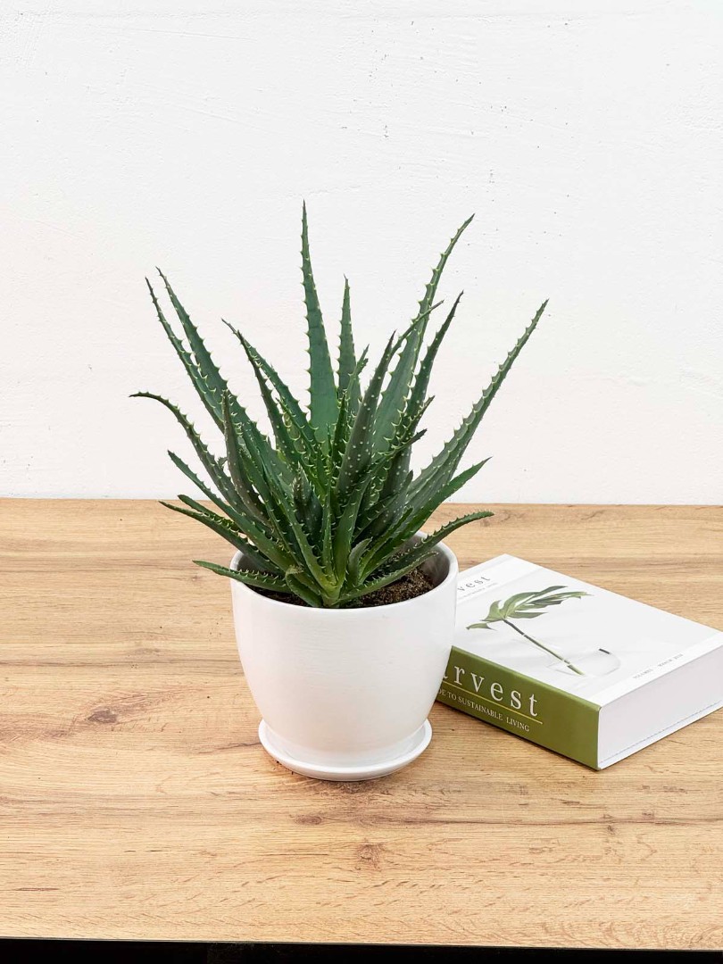 Алоэ Столетник D:12см H:35см в Белом горшке