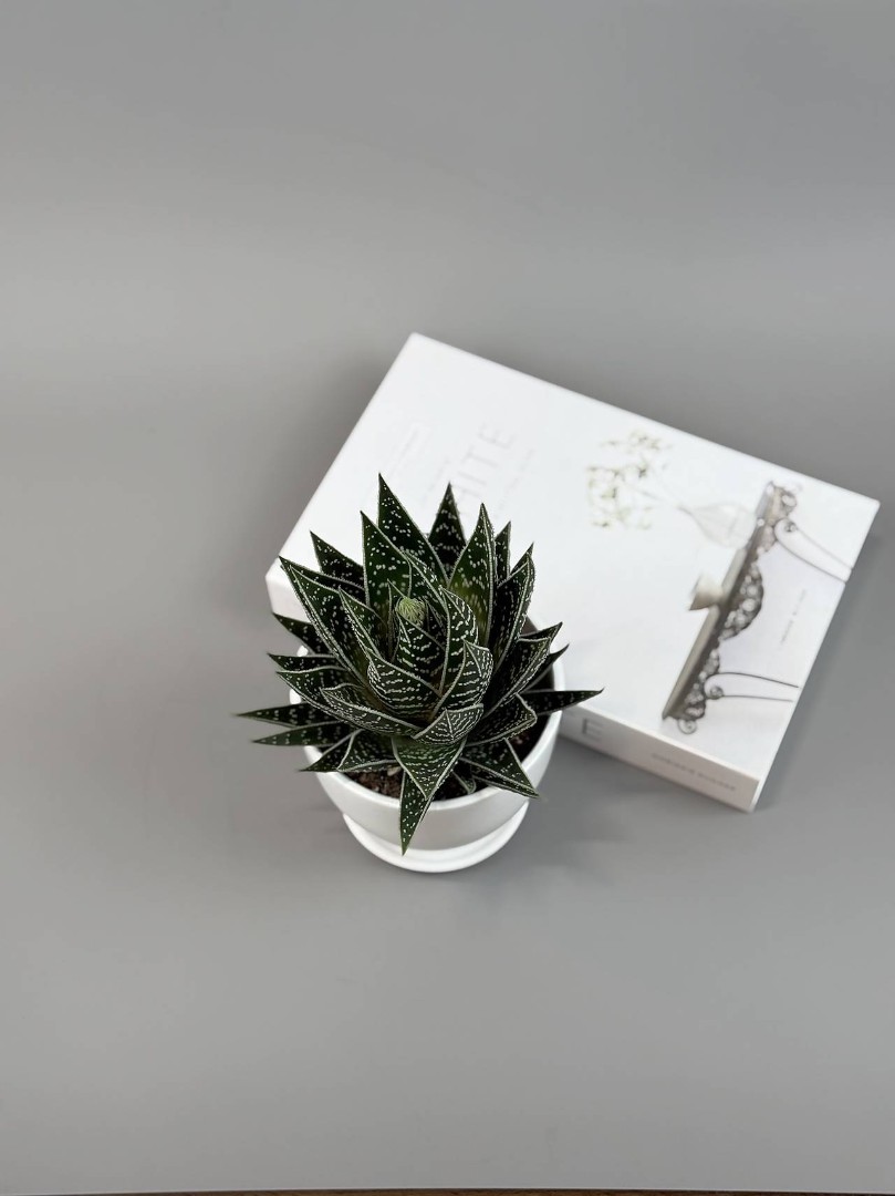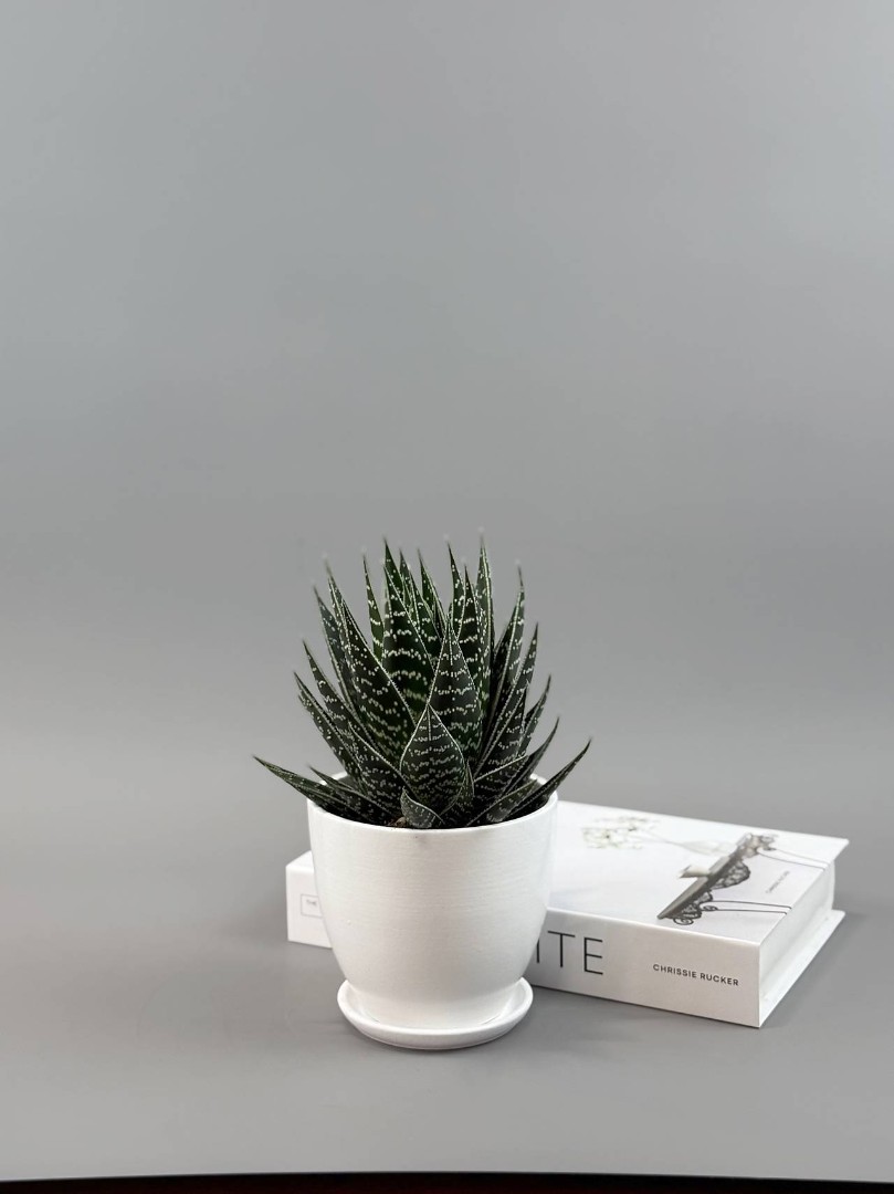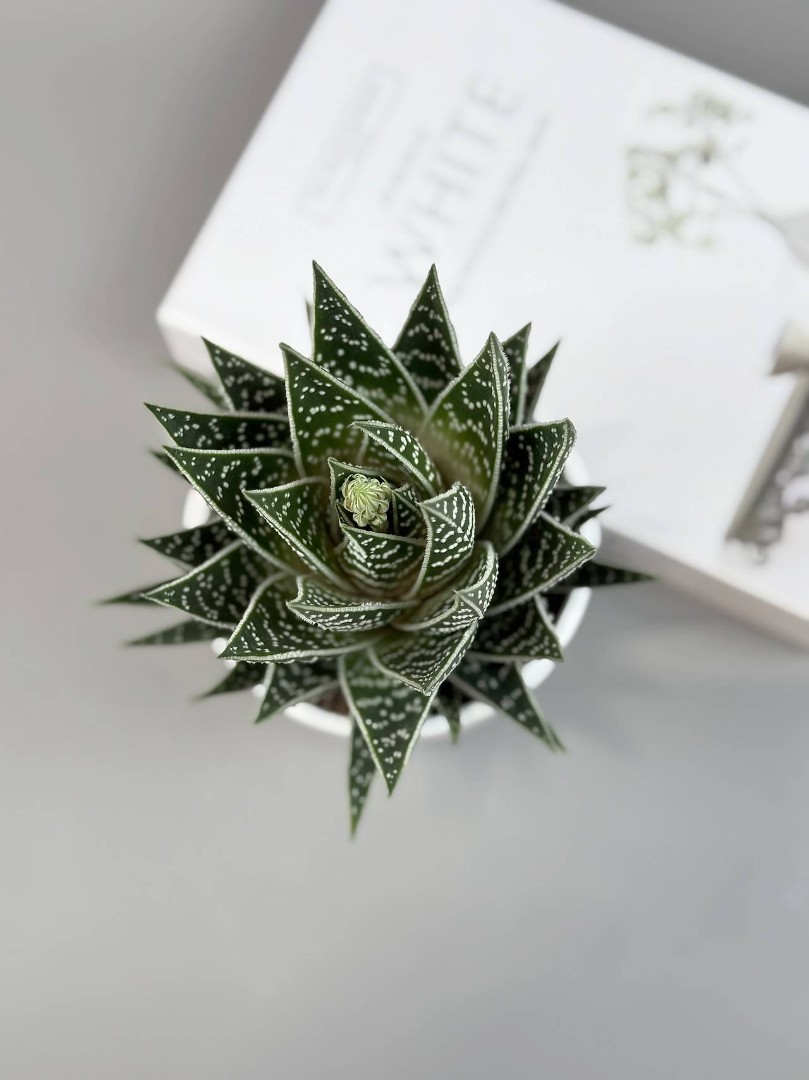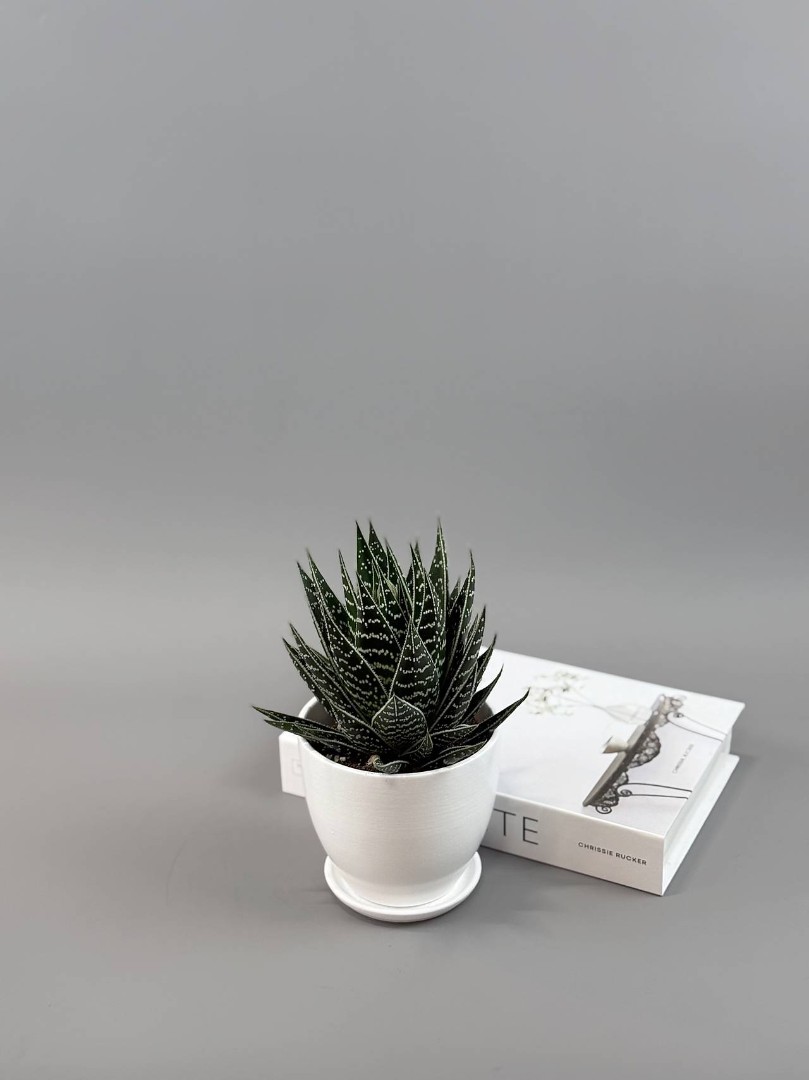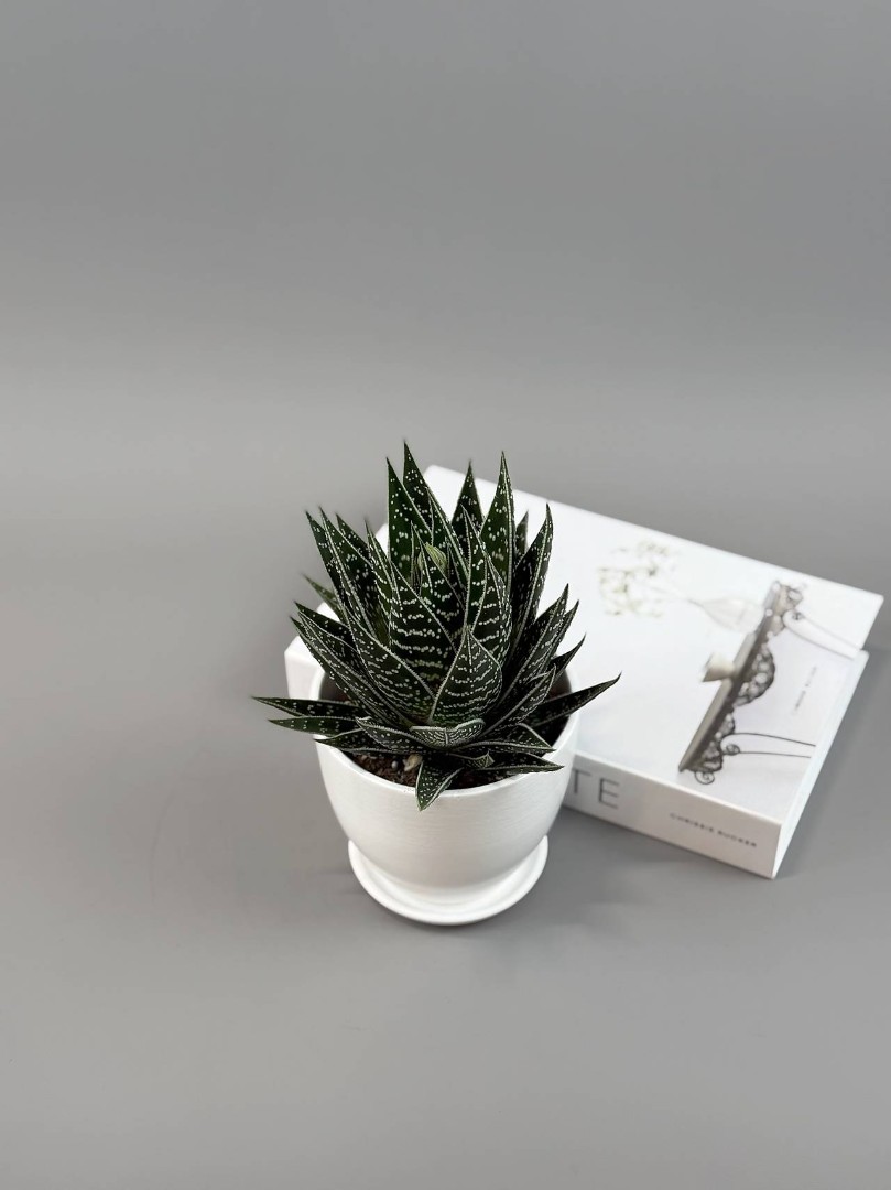 Алоэ «Тики Таки» в белом горшке — графичный узор в идеальной розетке