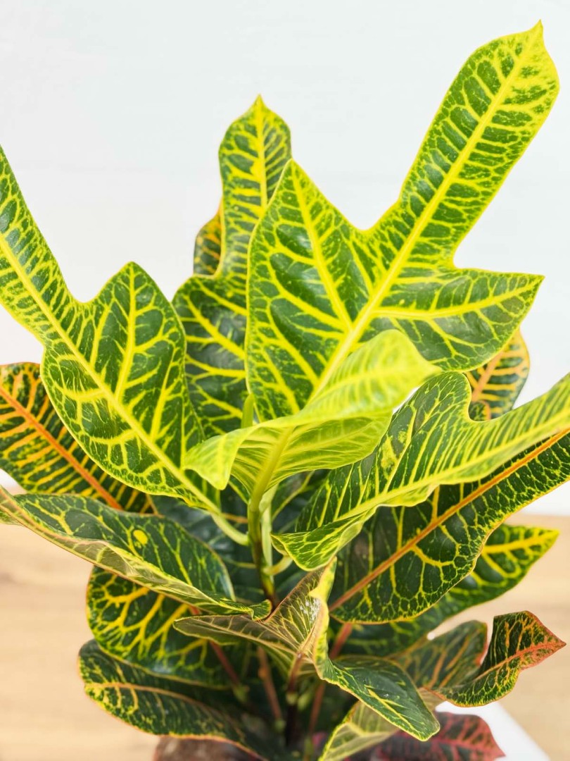 Кодиеум Экселент (Кротон) D:19см H:70см – это великолепное растение, которое привлекает внимание своим необычным внешним видом. Его листья имеют уникальную окраску, сочетая в себе оттенки зеленого, желтого, оранжевого и красного, создавая неповторимые узоры и рисунки.