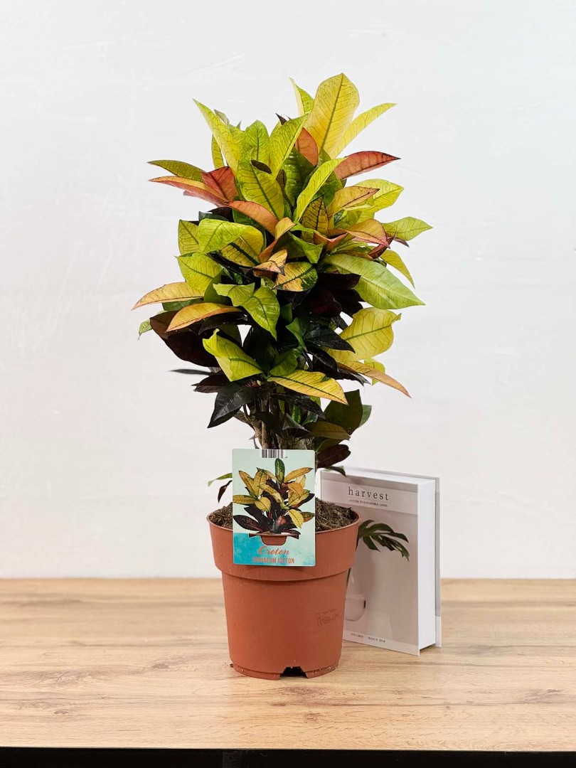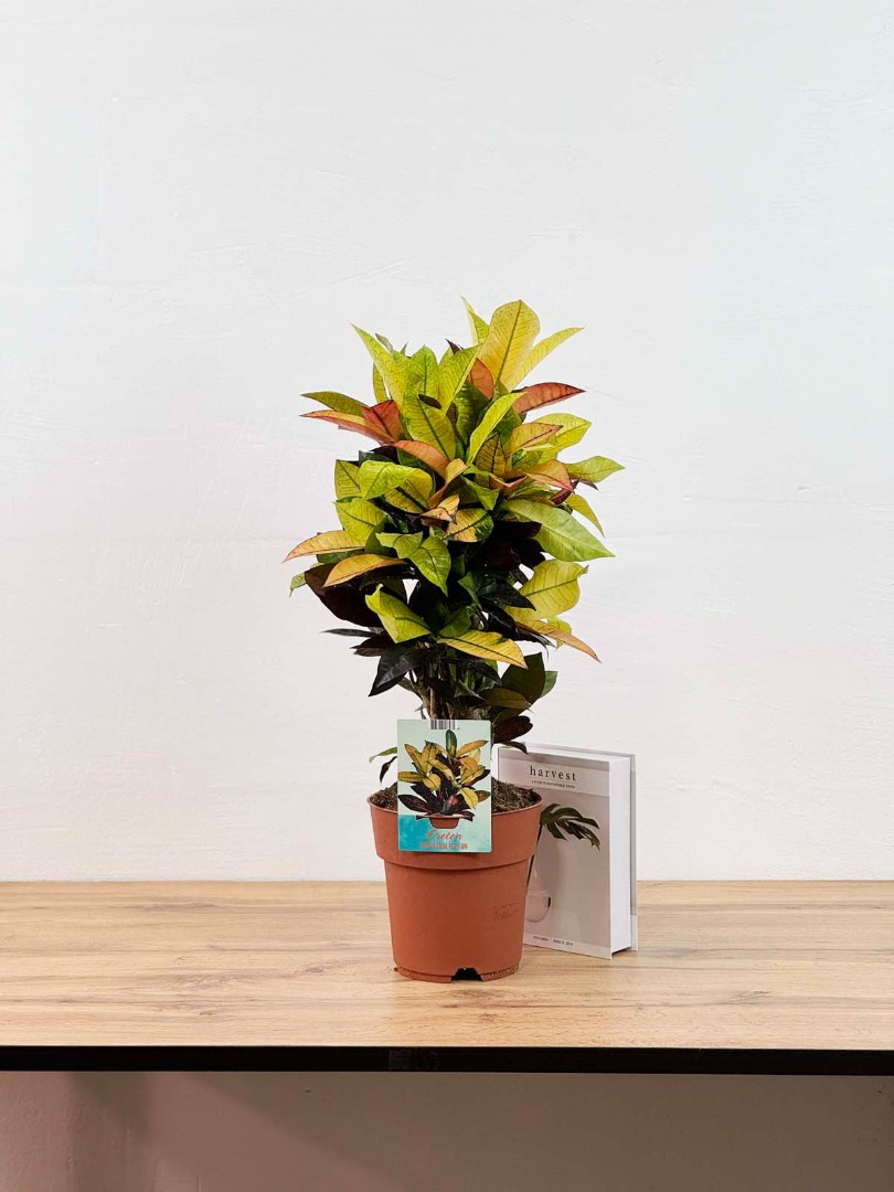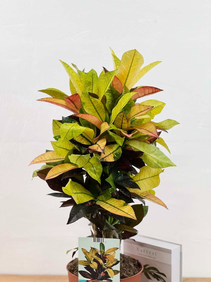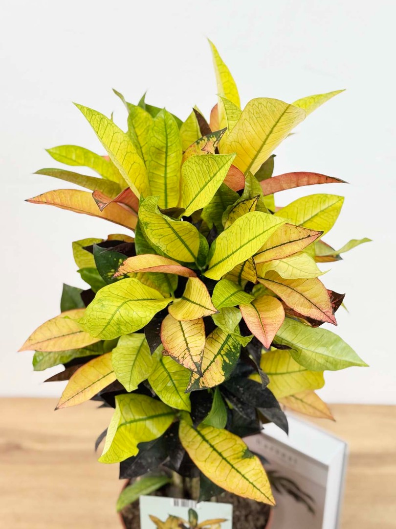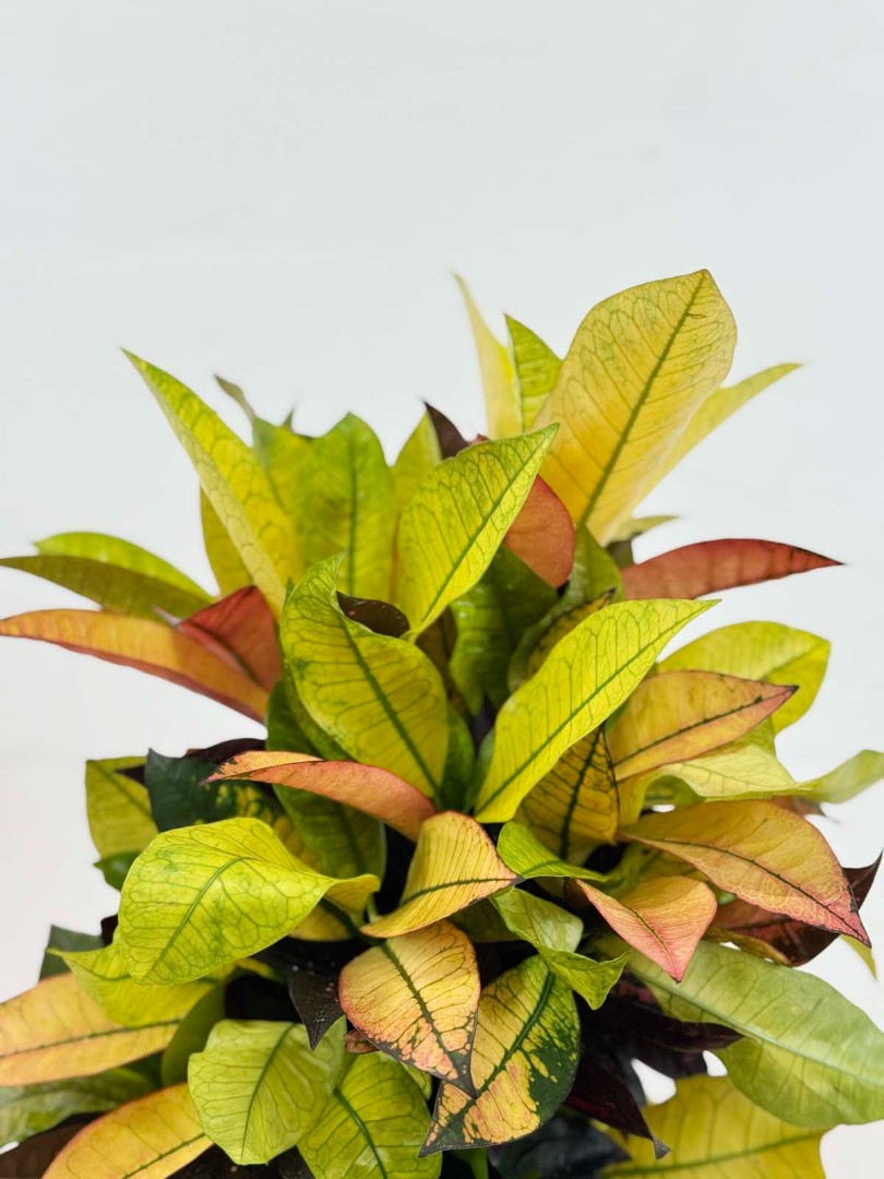 Кодиеум Миссис Айстон (Кротон разветвленный) D:19см H:70см – это удивительное растение, которое станет ярким акцентом в вашем интерьере. Его листья имеют разнообразную окраску, сочетая в себе оттенки зеленого, желтого, оранжевого и красного, создавая неповторимые узоры и рисунки.