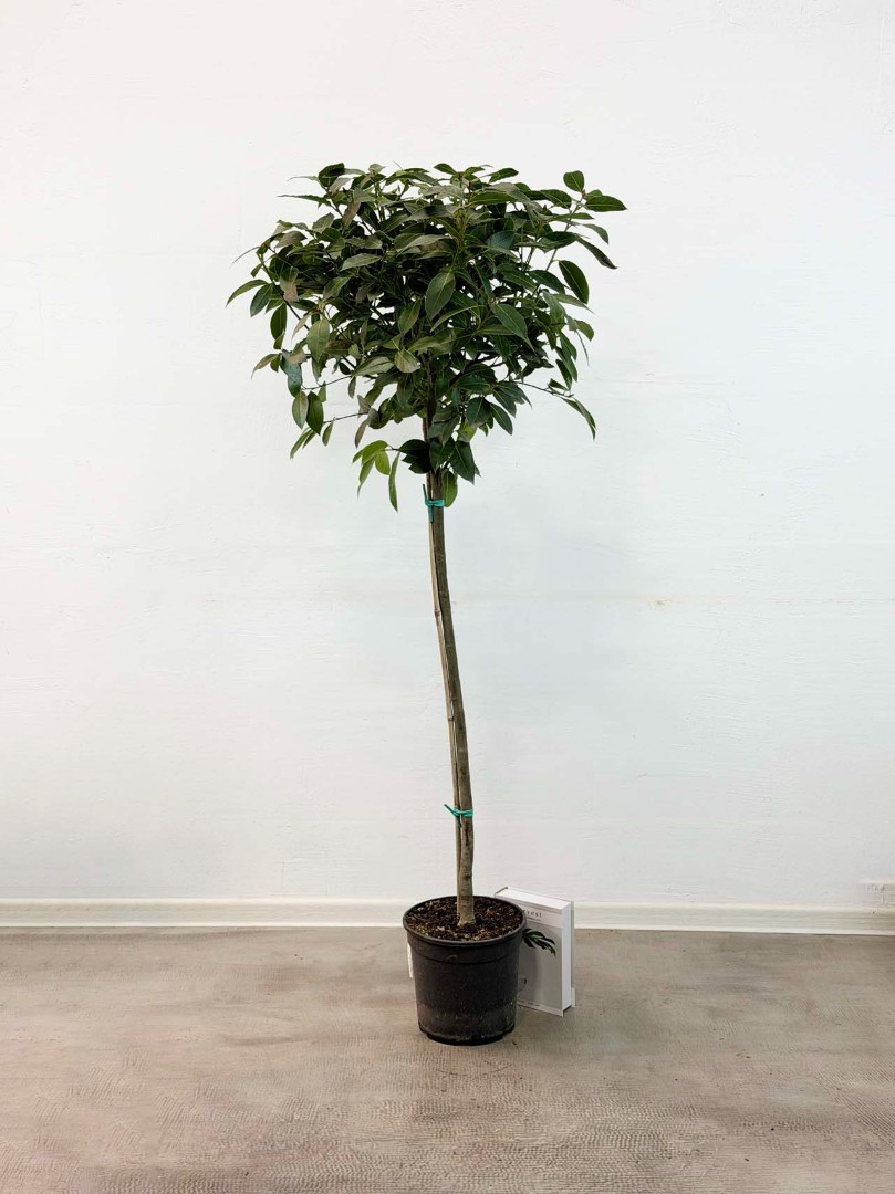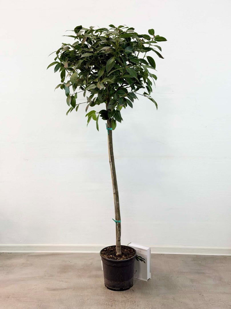 Лавр благородный (Laurus nobilis) штамбовый D:24см H:165см – это вечнозеленое растение, которое известно своими ароматными листьями и ягодами. Оно широко используется в кулинарии для придания блюдам особого вкуса и аромата, а также в декоративных целях благодаря своей густой кроне и способности к формированию топиарных фигур.