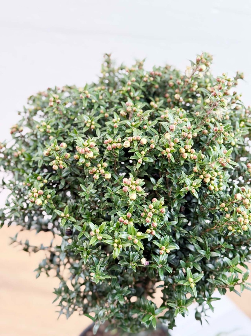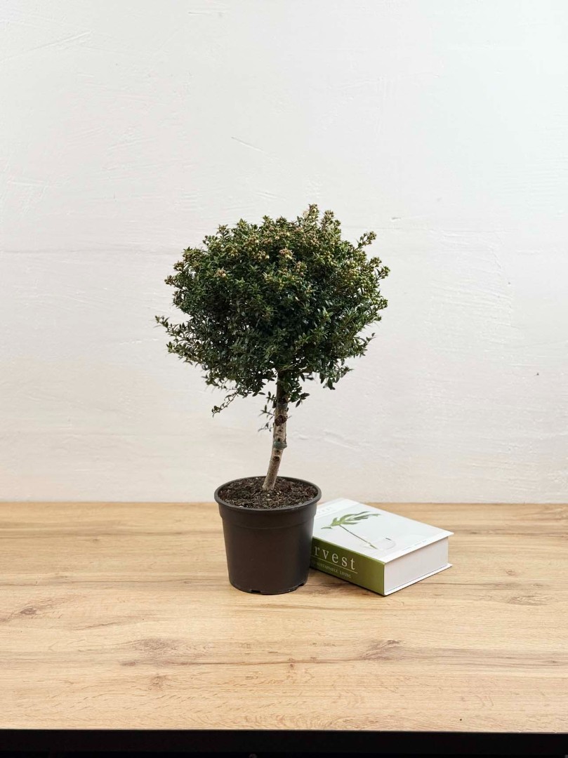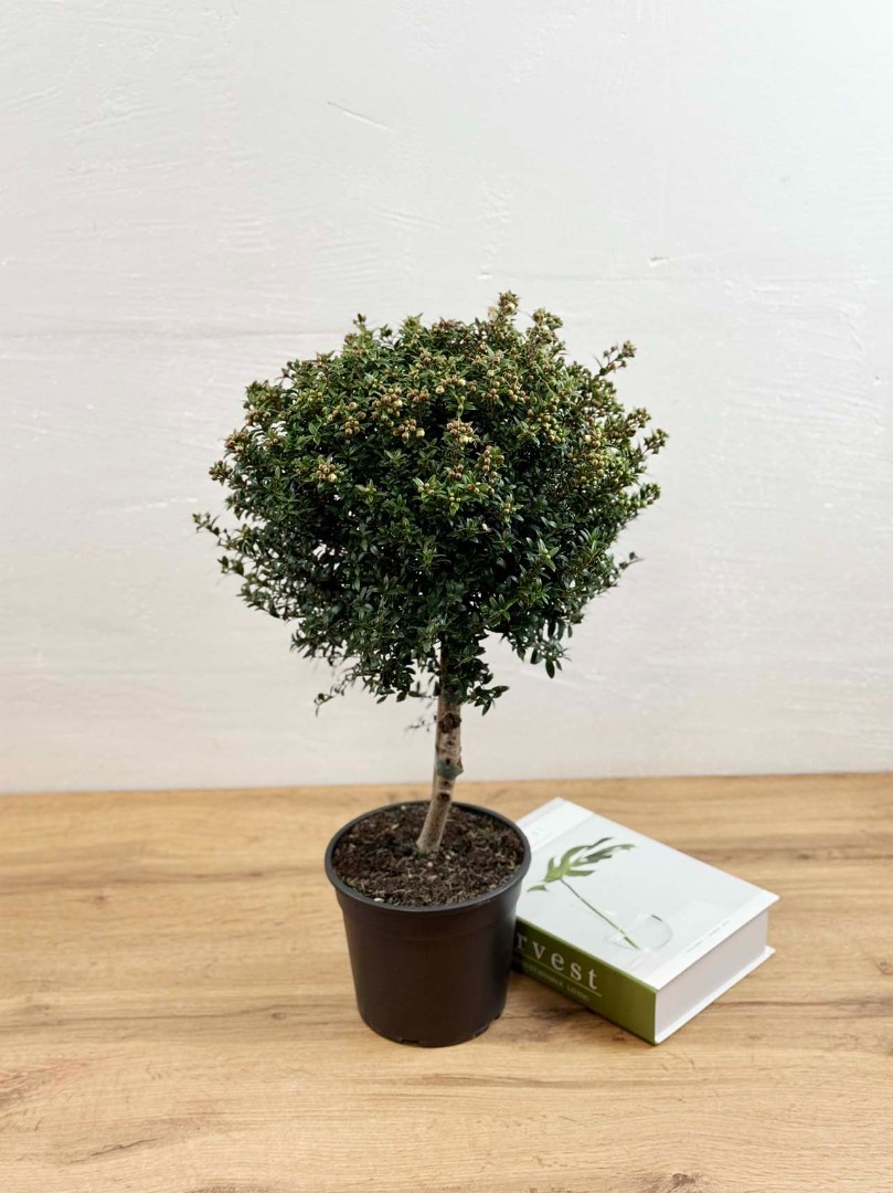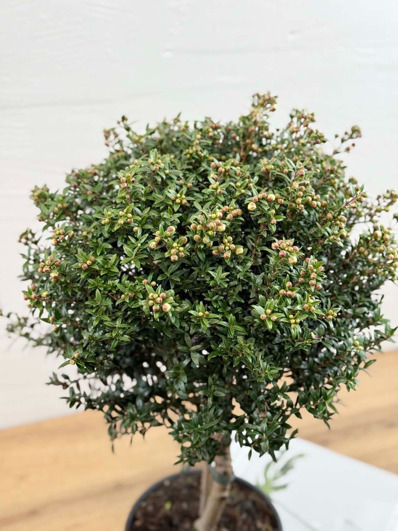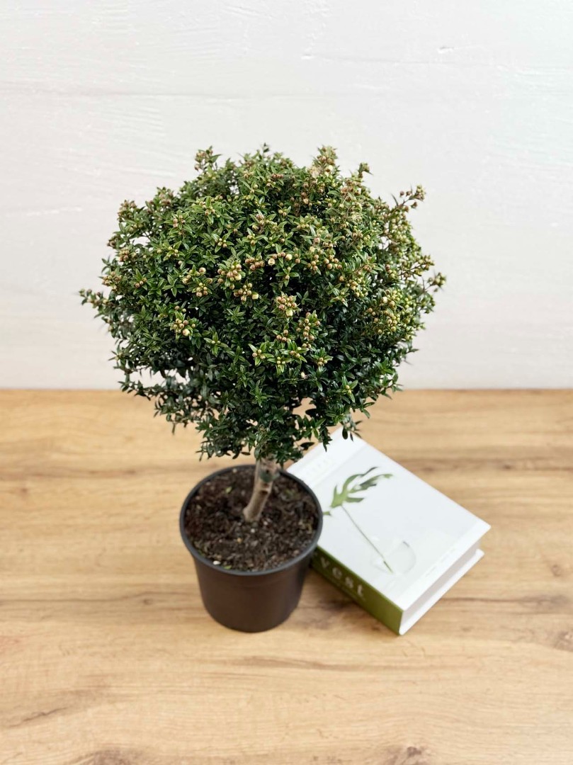 Мирт штамбовый с бутонами D:15см H:50см – это изысканное растение, которое станет настоящим украшением вашего дома или офиса. Оно представляет собой небольшое деревце с пышной кроной, покрытой мелкими блестящими листьями. Особенностью этого мирта является его форма, которая достигается путем специальной обрезки и формирования ствола.Вырастает до 70 см. Имеет густую и пышную крону и зкрасивых мелких, блестящих, темно-зеленых листочков.