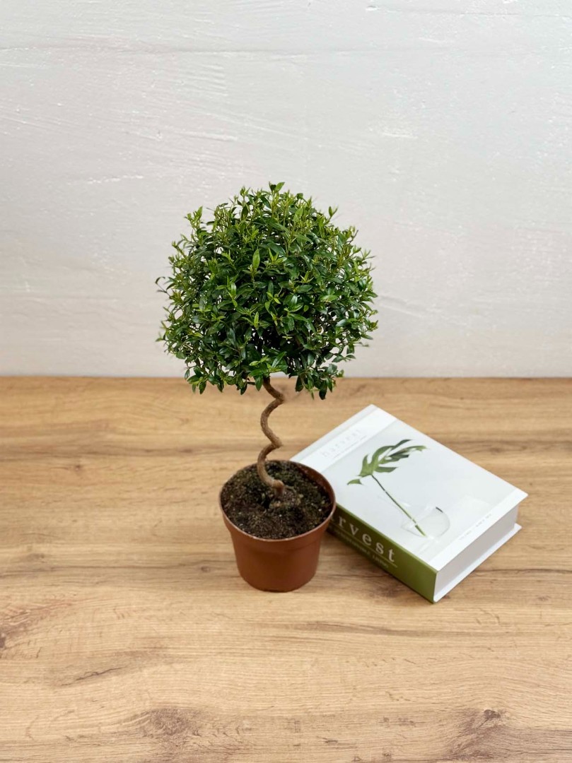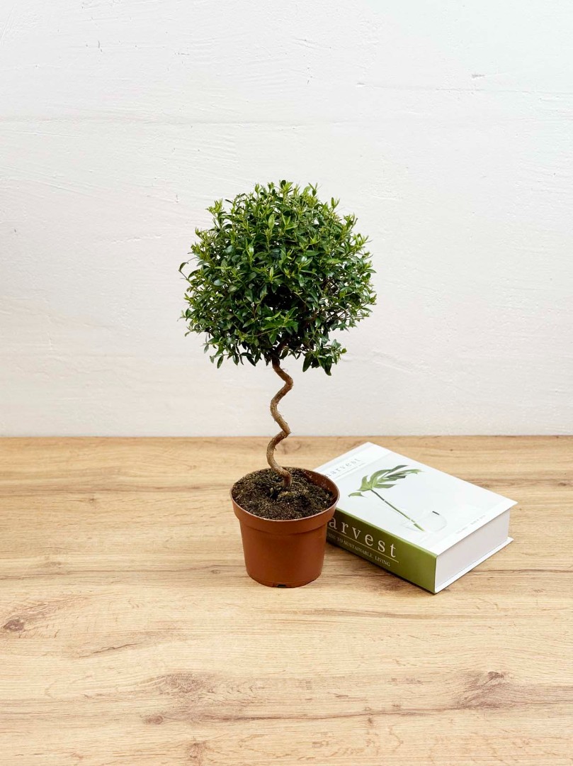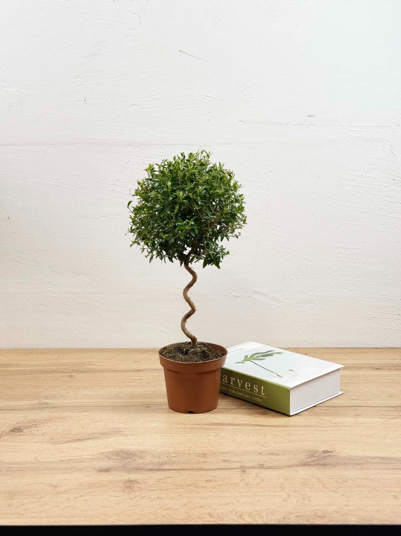 Мирт спираль (Дерево счастья) D:12см H:40см – это изысканное растение, которое станет настоящим украшением вашего дома или офиса. Оно представляет собой небольшое деревце с пышной кроной, покрытой мелкими блестящими листьями. Особенностью этого мирта является его форма, которая достигается путем специальной обрезки и формирования ствола.Вырастает до 70 см. Имеет густую и пышную крону и зкрасивых мелких, блестящих, темно-зеленых листочков.