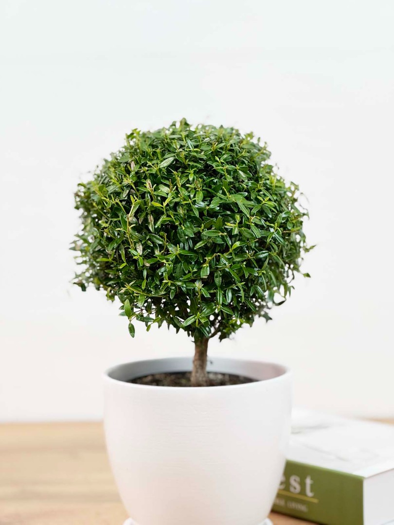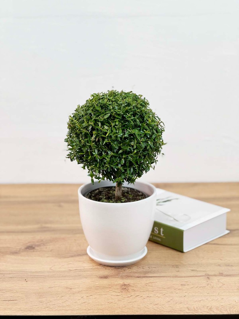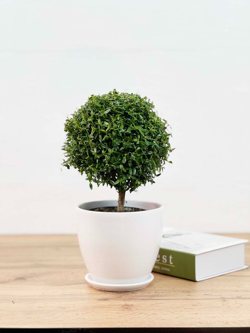 Мирт штамбовый в Белом горшке D:12см H:30см – это изысканное растение, которое станет настоящим украшением вашего дома или офиса. Оно представляет собой небольшое деревце с пышной кроной, покрытой мелкими блестящими листьями. Особенностью этого мирта является его форма, которая достигается путем специальной обрезки и формирования ствола.Вырастает до 70 см. Имеет густую и пышную крону и зкрасивых мелких, блестящих, темно-зеленых листочков.