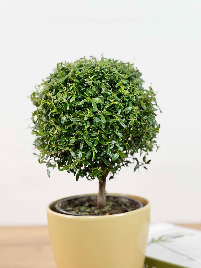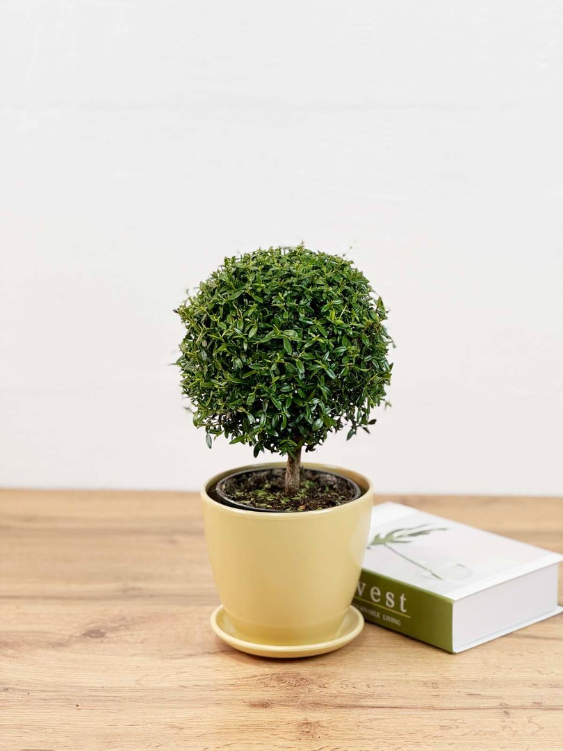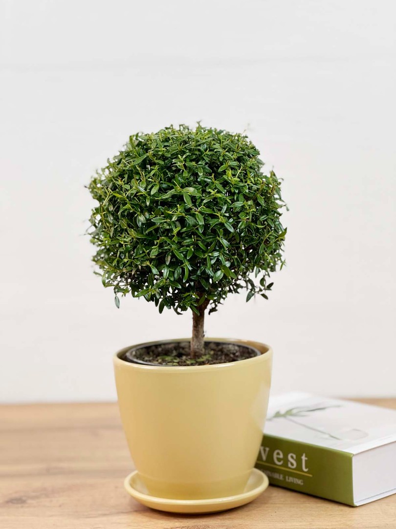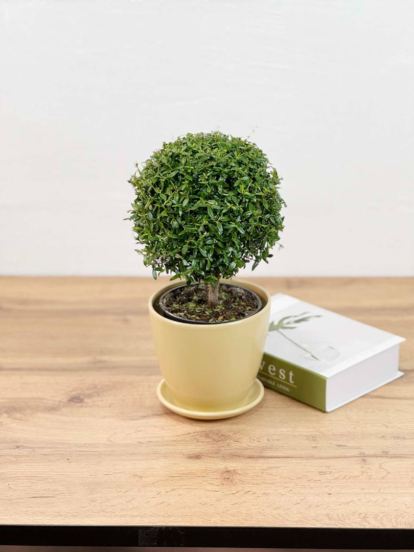 Мирт штамбовый в Бежевом горшке D:12см H:30см – это изысканное растение, которое станет настоящим украшением вашего дома или офиса. Оно представляет собой небольшое деревце с пышной кроной, покрытой мелкими блестящими листьями. Особенностью этого мирта является его форма, которая достигается путем специальной обрезки и формирования ствола.Вырастает до 70 см. Имеет густую и пышную крону и зкрасивых мелких, блестящих, темно-зеленых листочков.