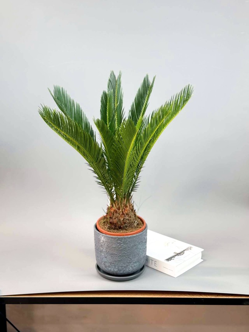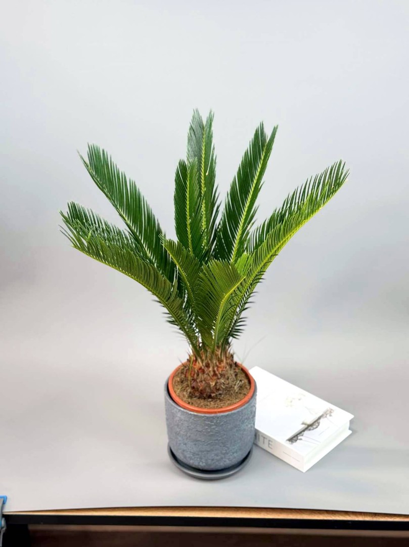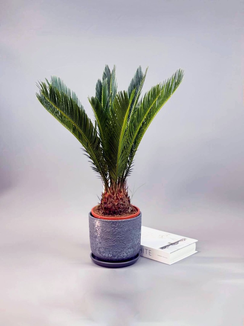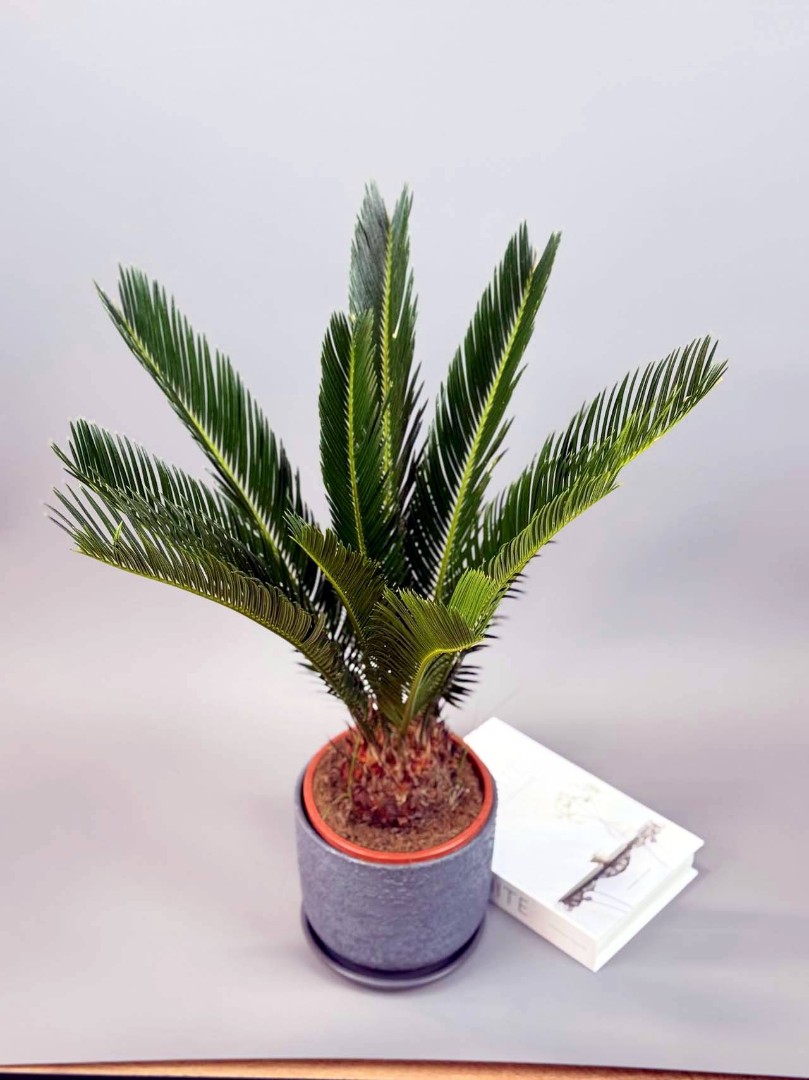 Это растение с пышной кроной и длинными, узкими листьями, которые напоминают перья. Цикас неприхотлив в уходе и легко приспосабливается к различным условиям, что делает его отличным выбором для начинающих цветоводов.