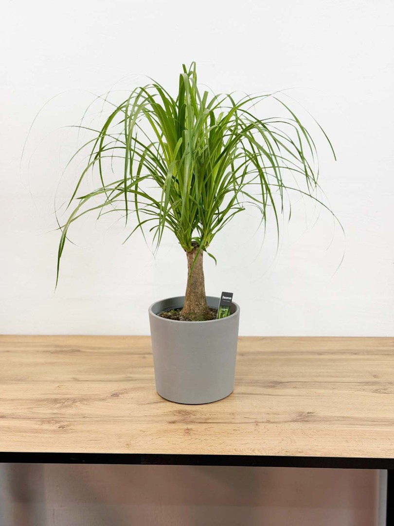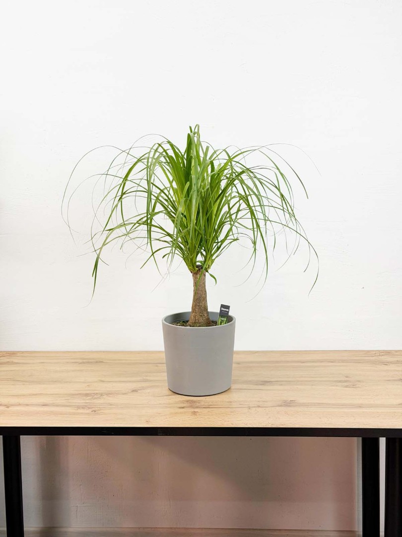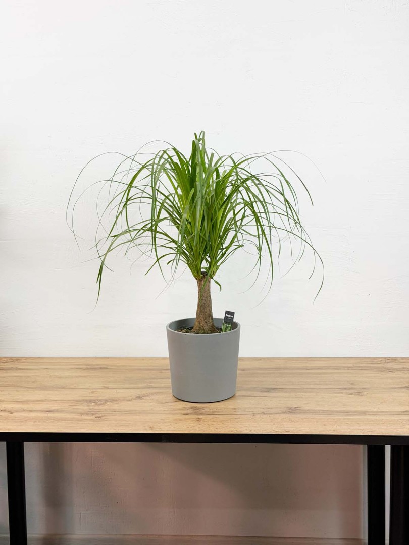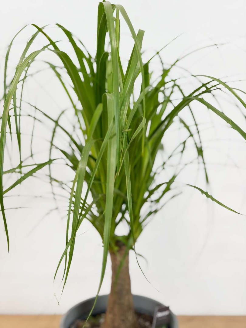 Нолина — это растение, которое невозможно перепутать ни с чем другим. Мощный, расширенный к низу ствол, напоминающий бутылку или слоновью ногу, увенчан густым каскадом длинных, закрученных листьев-лент. Это не просто цветок, а настоящая природная скульптура, которая выглядит экзотично, стильно и очень современно.