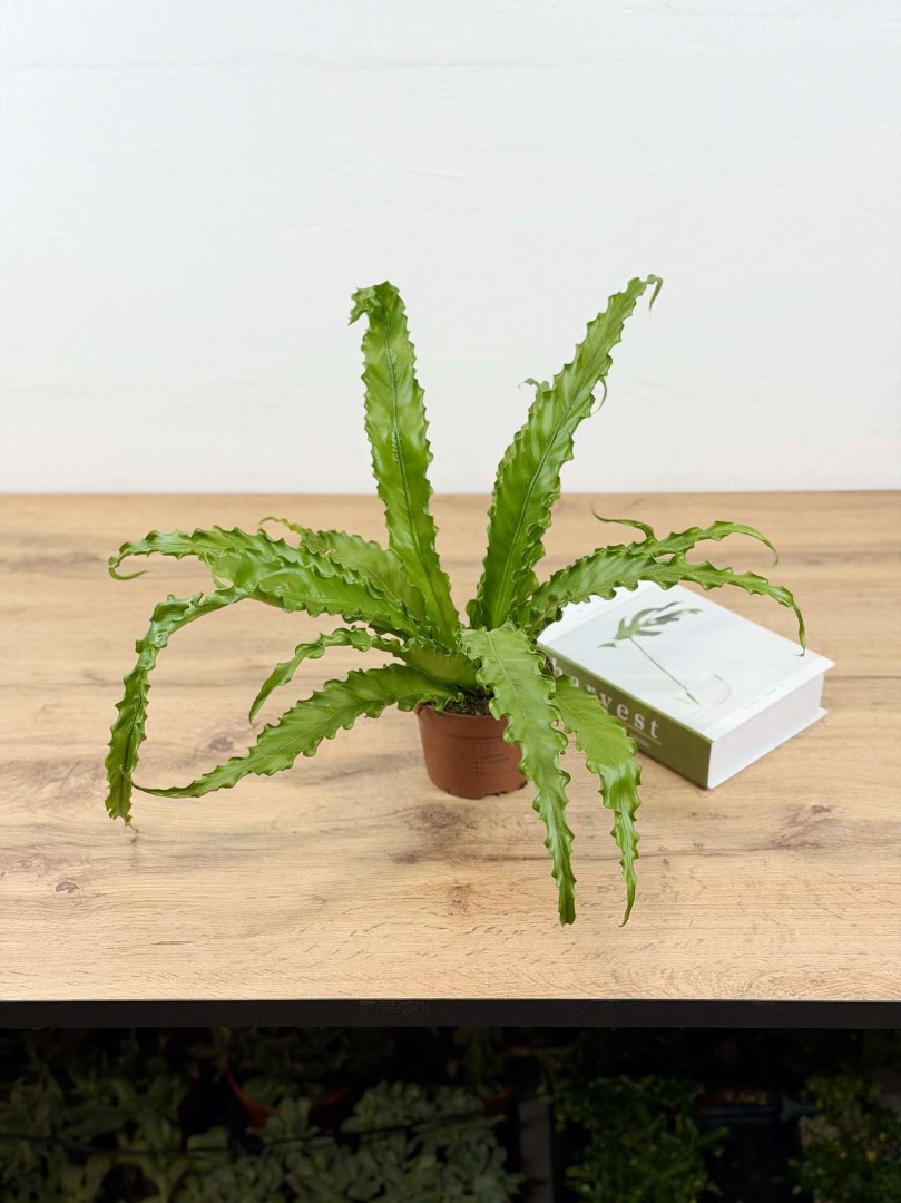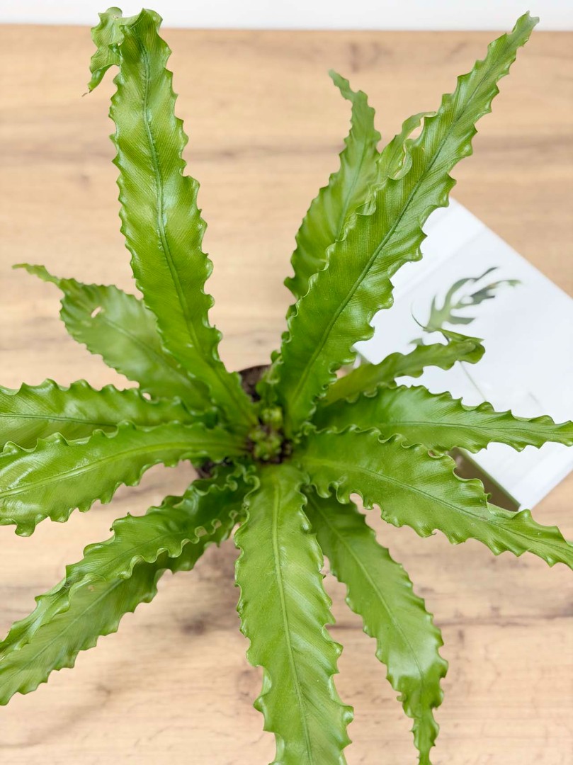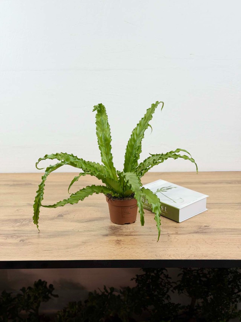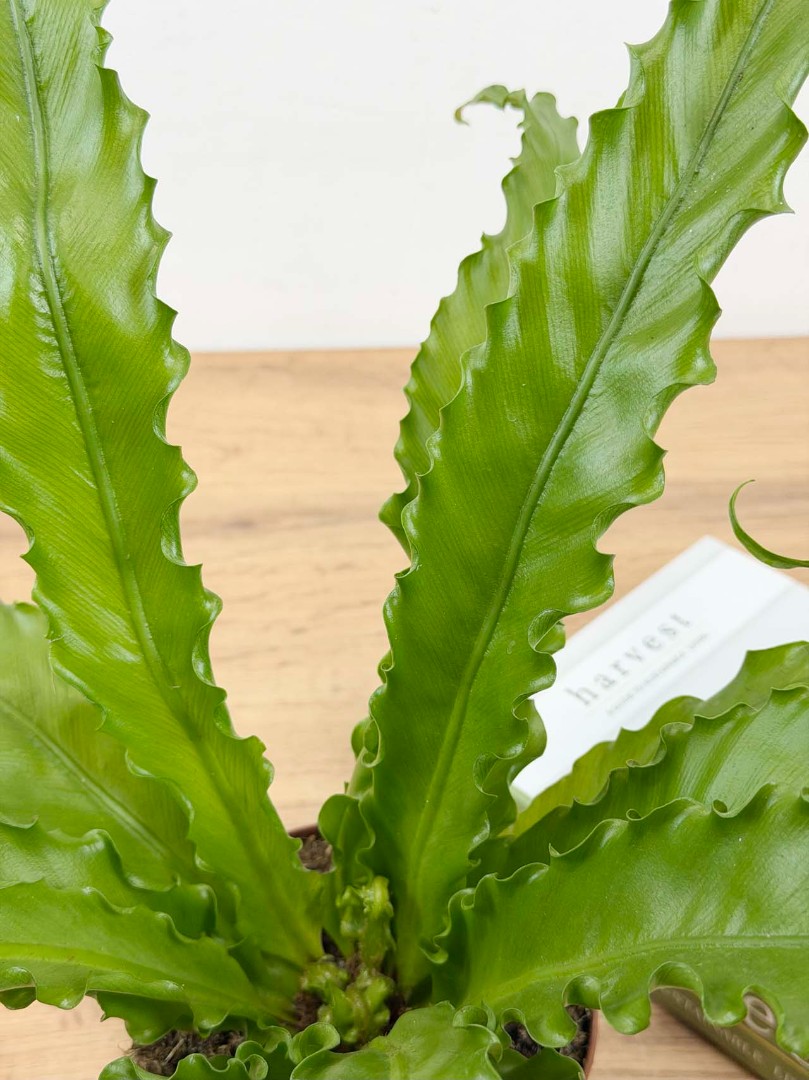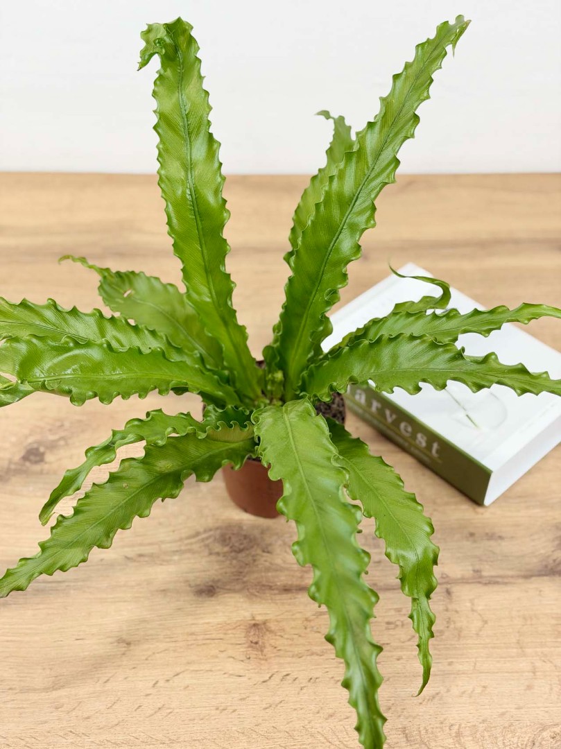 Асплениум «Осака» — это не тот "бабушкин" папоротник, который осыпается от каждого сквозняка. Это мощное, скульптурное растение с блестящими, кожистыми листьями, собранными в плотную розетку-гнездо. Их края изящно гофрированы, создавая невероятный объем и игру света. Это растение выглядит современно, стильно и очень свежо.