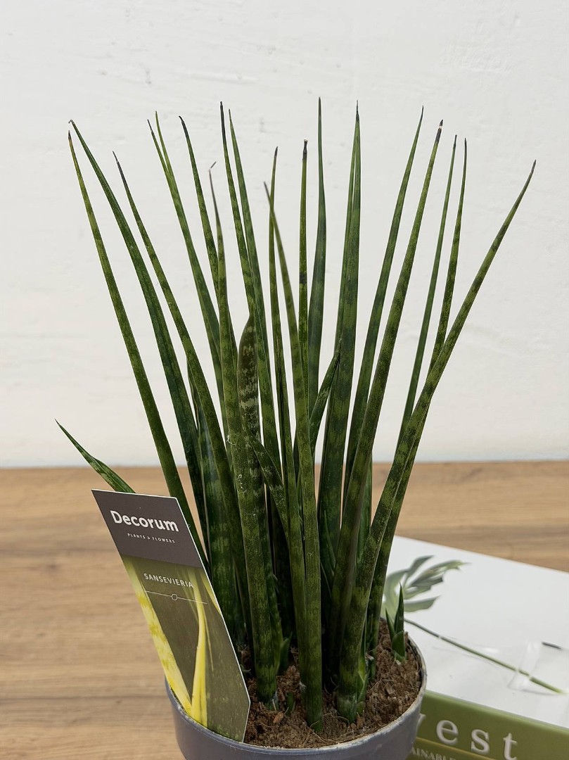 Сансевиерия, известная также как «щучий хвост», представляет собой изысканное и неприхотливое растение, которое станет прекрасным дополнением к любому интерьеру. Сорт редкий, отличается прямостоячими слегка разбросанными в стороны листьями трубчатой формы. В середине листовых пластин вдоль всей длинны есть небольшая выемка (углубление). Листья с уникальной текстурой, напоминающей папоротник. Листья окрашены в тёмно-зелёный цвет с серебристыми полосами, которые создают эффектный узор, напоминающий японские мотивы. Растение может достигать высоты до 70 см.