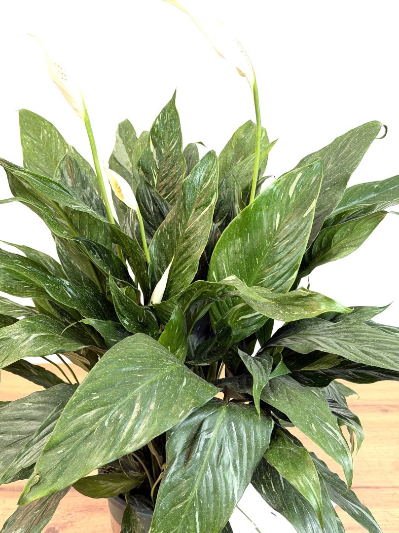 Красив круглый год: В отличие от обычных сортов, которые могут казаться немного скучными вне периода цветения, вариегатный Спатифиллум великолепен всегда. Его пестрая листва сама по себе является роскошным украшением интерьера.