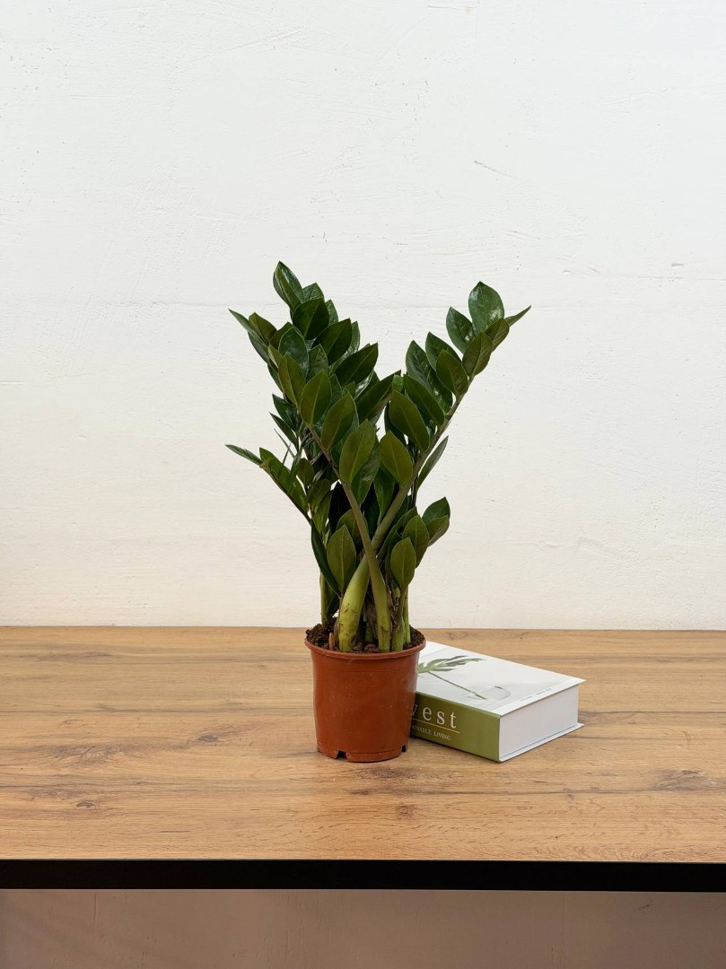 Замиокулькас (долларовое дерево) не требует особого внимания по уходу, поэтому отлично подойдет для расположения в офисе или квартире. Расположить его можно и в полутемном месте и в светлой комнате, размер позволяет разместить растение на столе, на полу или на подоконнике